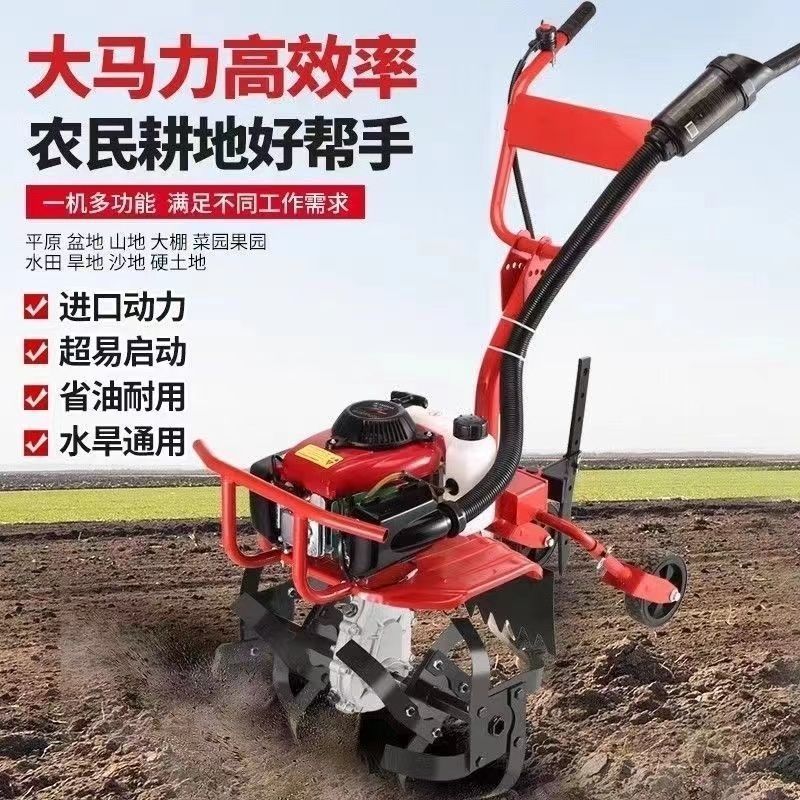 微耕耘機小型農業用多機能ガソリン回転耕耘機家庭用鍬草取り松土開溝耕耘機