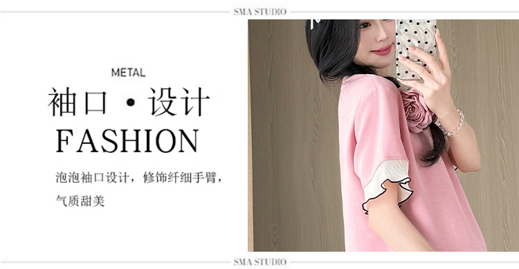 2022夏服氷糸水波縞透かしデザイン感小香風ニット半袖妊婦ワンピース