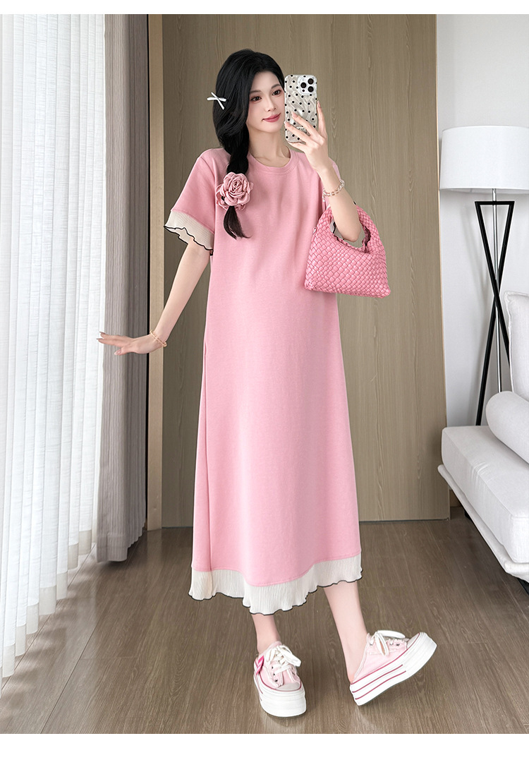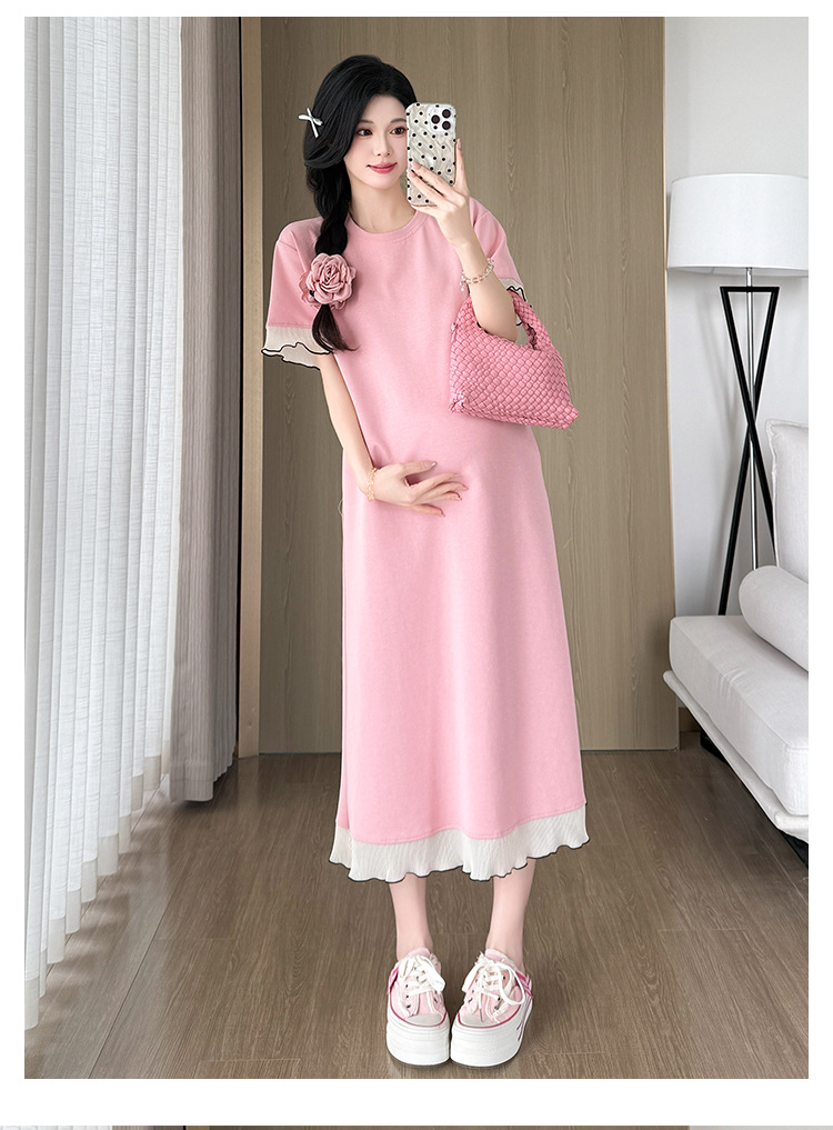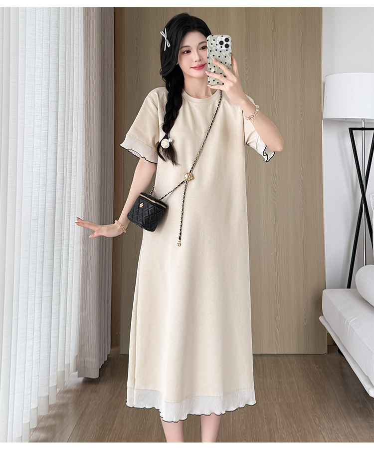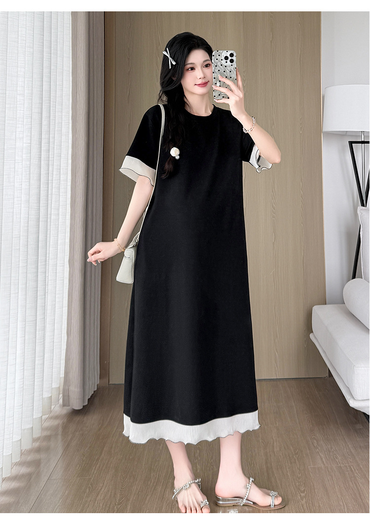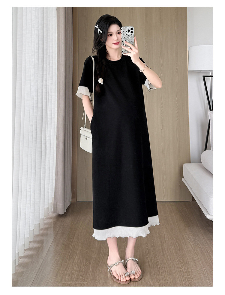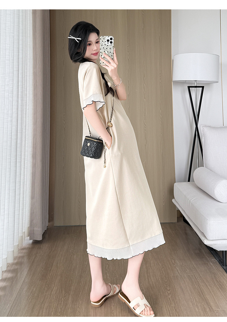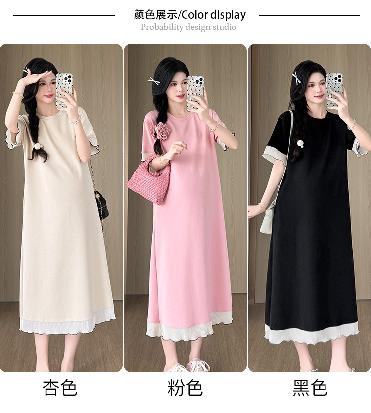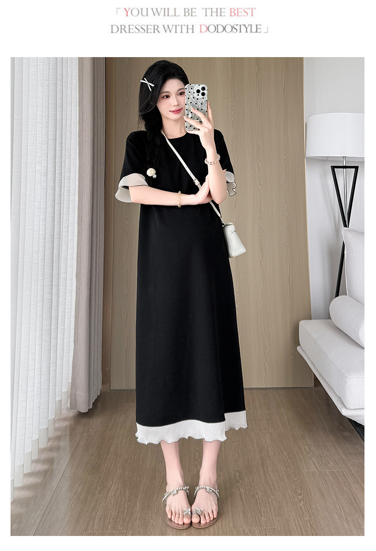 2025新しい夏のミドル丈ラウンドネックパッチワークデザインルーズでスリムなカジュアルドレス