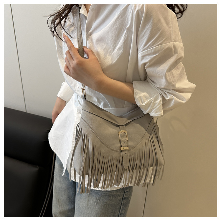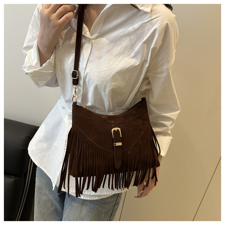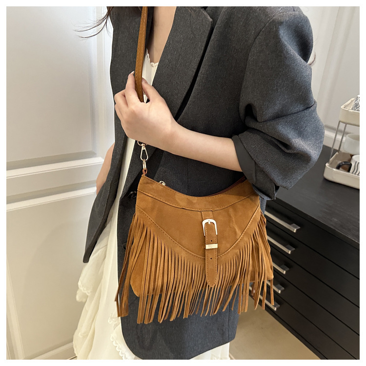 今年の人気のタッセル個性2025春の新しいスタイルのファッショナブルなレトロなつや消しテクスチャの女性用シングルショルダークロスボディバッグ