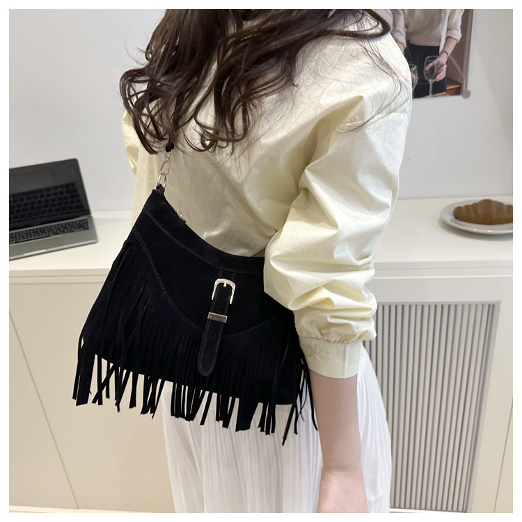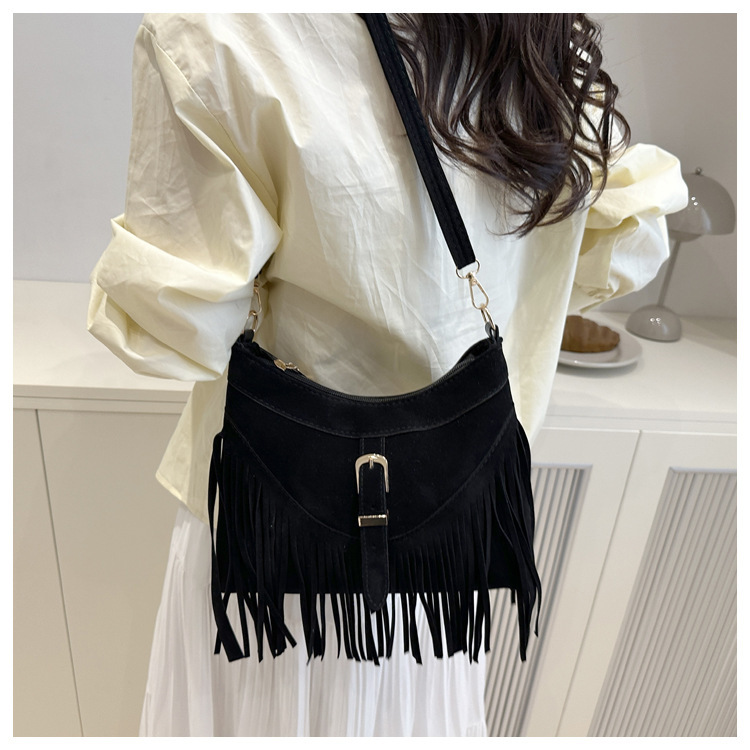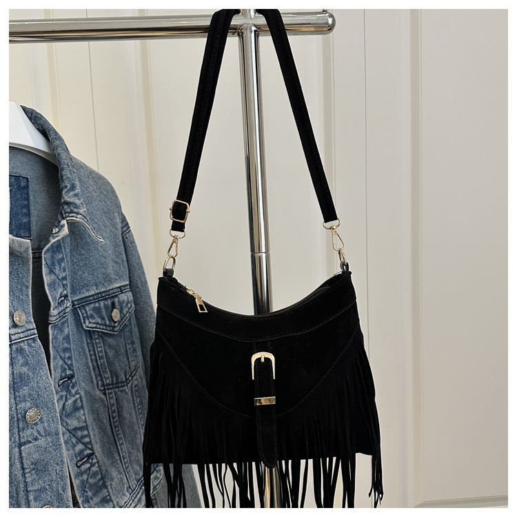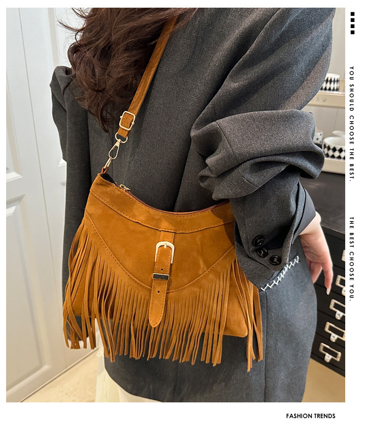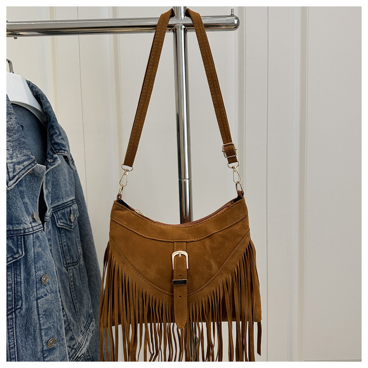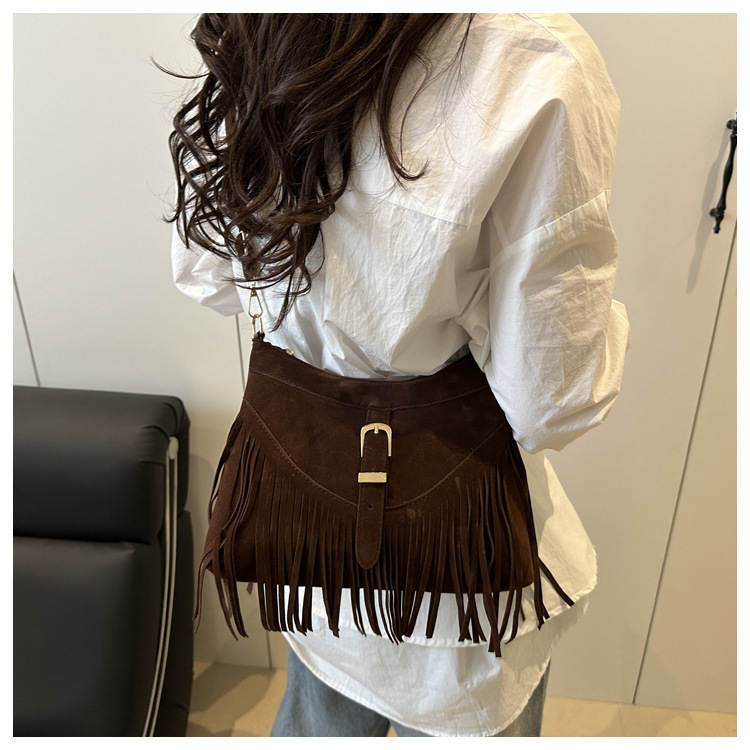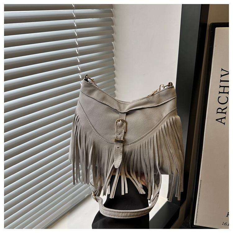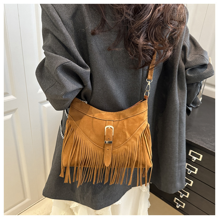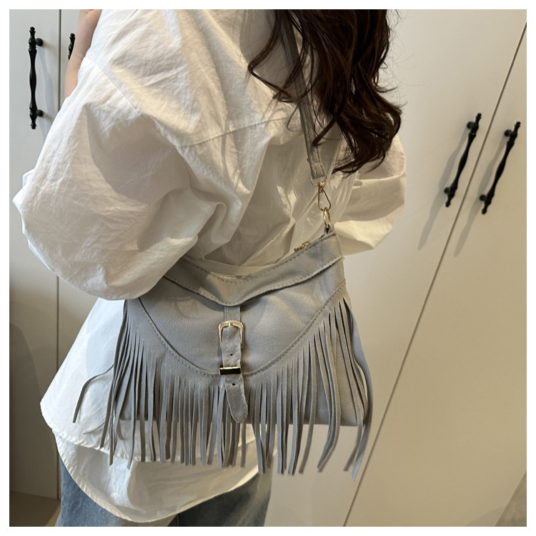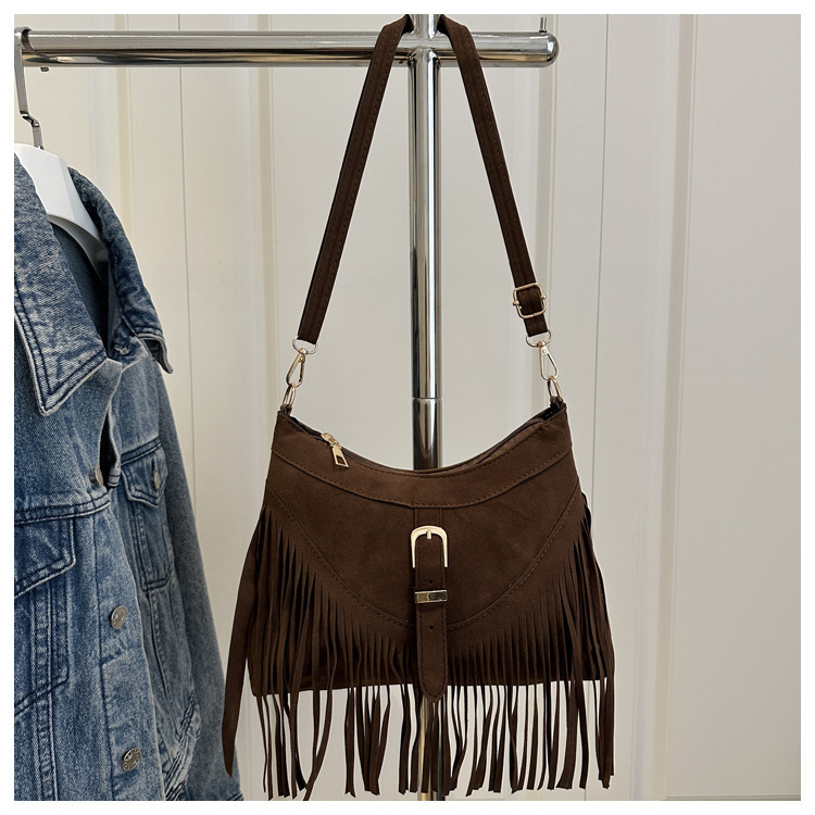 2025冬の新スタイルファッショナブルでシンプルな西洋スタイルのパーソナライズされたタッセルバッグレトロショルダークロスボディバッグ大容量トートバッグ