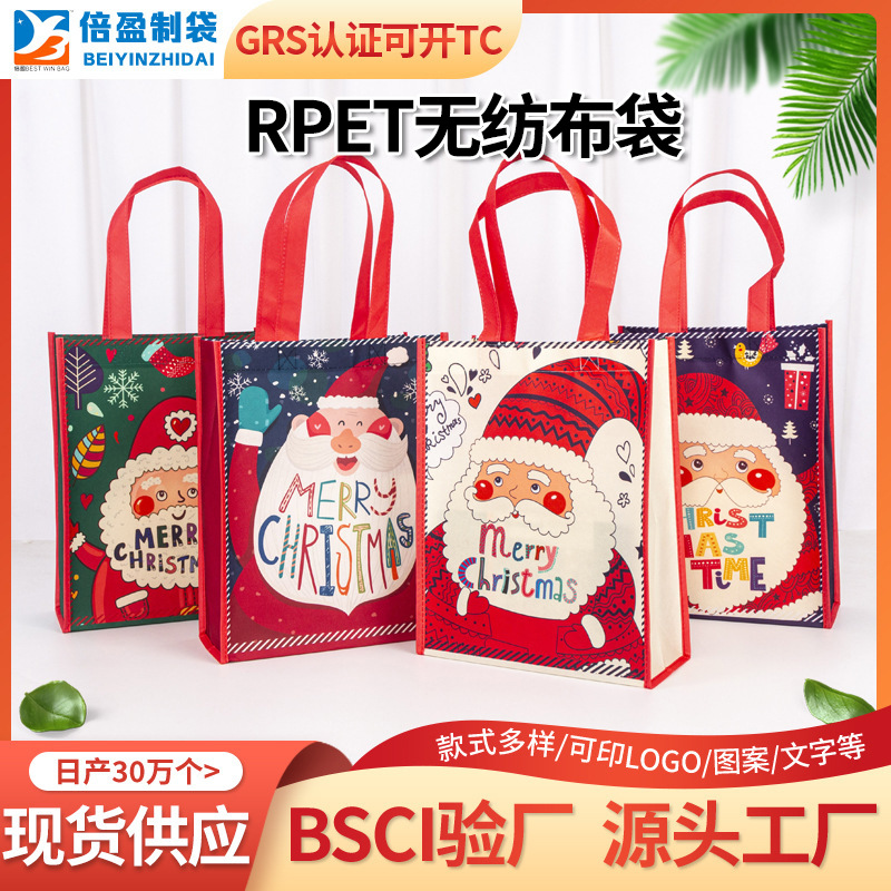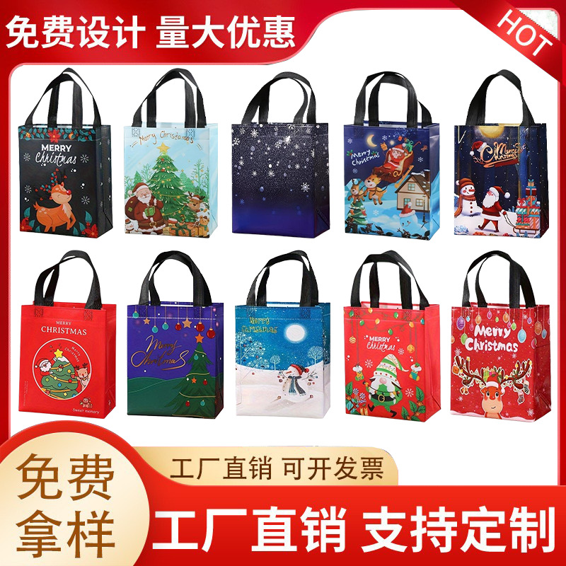 跨境爆款圣诞节礼品袋热压覆膜无纺布手提袋环保袋厂家直销批发