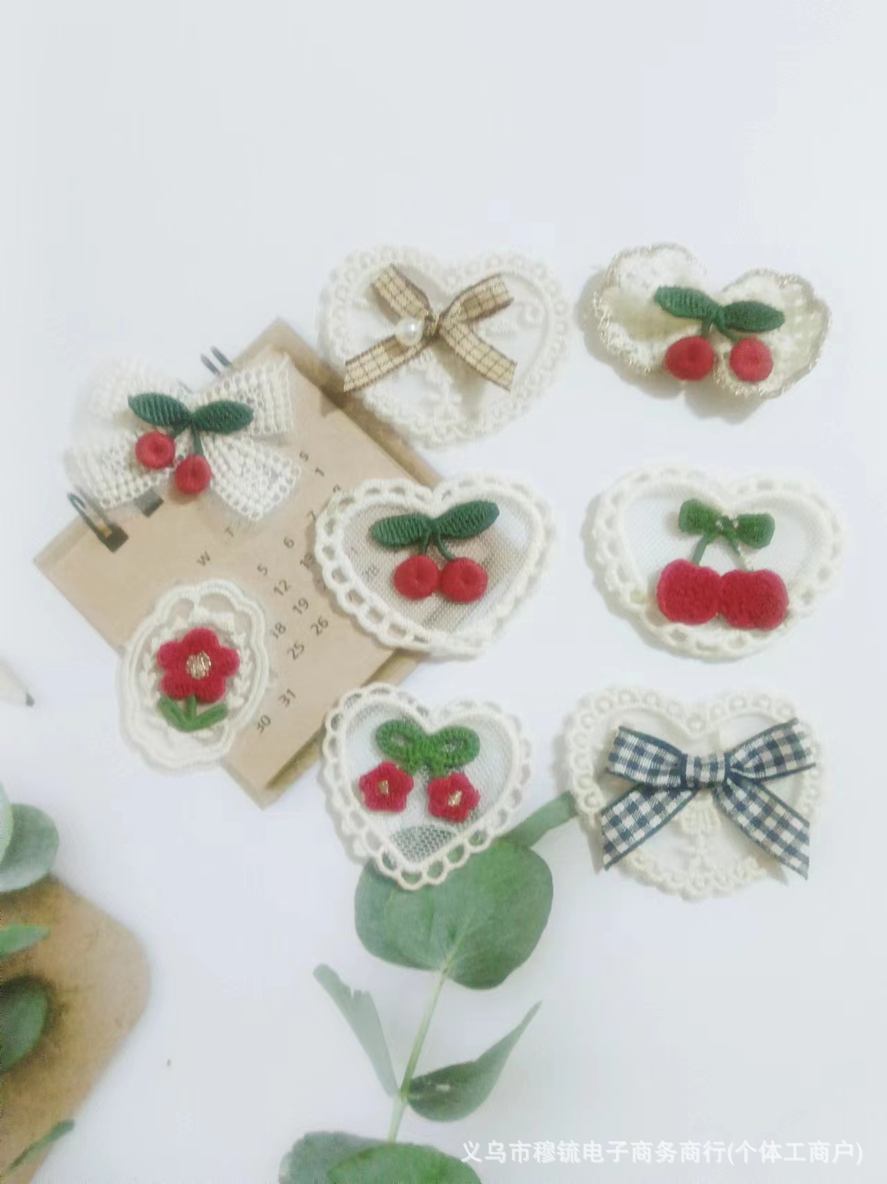 蝶結び、ハート、チェリー、手作りDIY、コサージュ、服、メッシュ、ヘアピン、ブローチ、アクセサリー、装飾品、材料、編み物