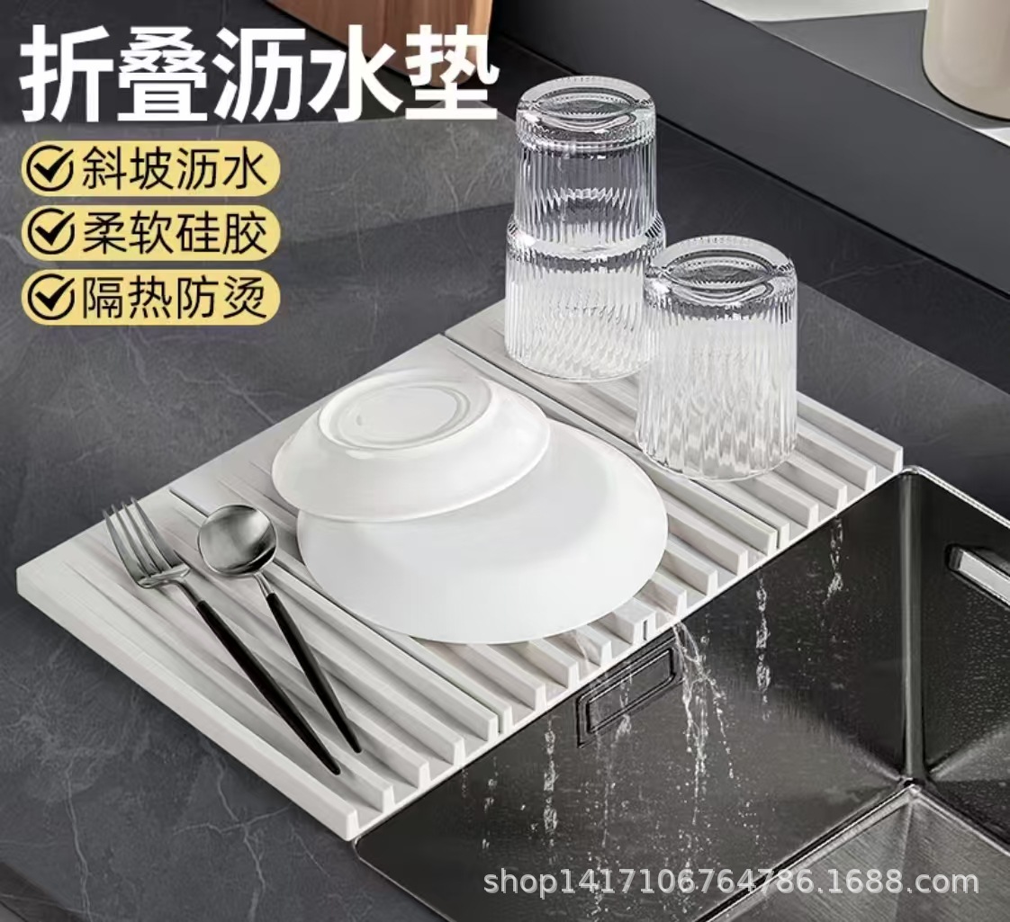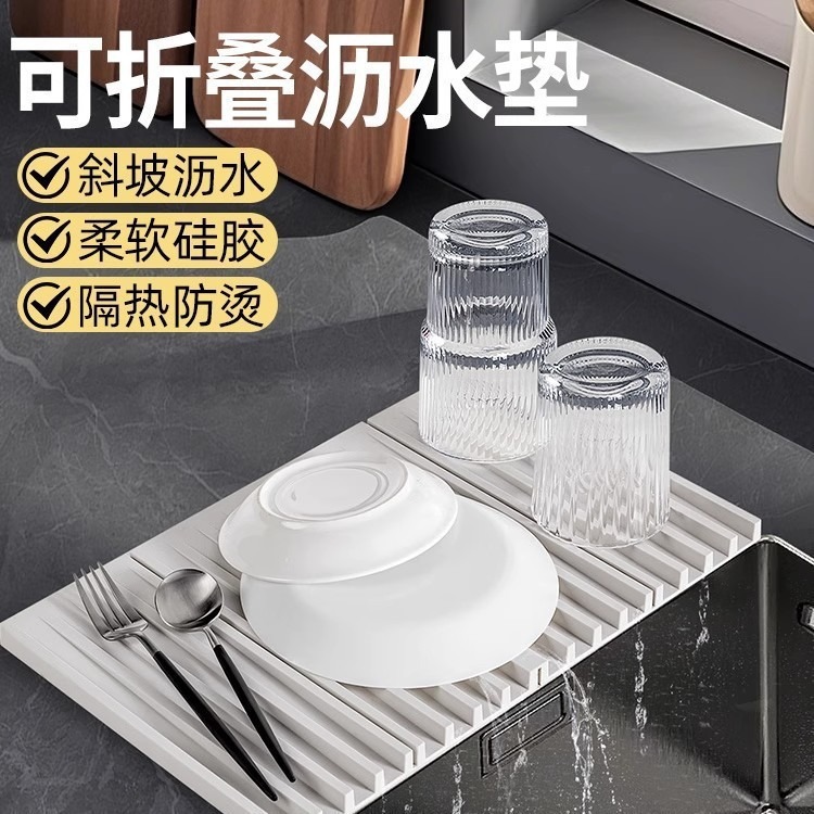 水槽沥水垫硅胶导流式厨房果蔬碗碟滤水干燥垫斜坡排水垫硅胶垫