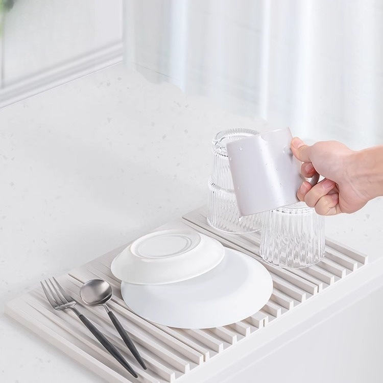 折りたたみ式食器排水マット、シリコンシンクマット、食器、大型スロープ排水マット、食器乾燥および水管理