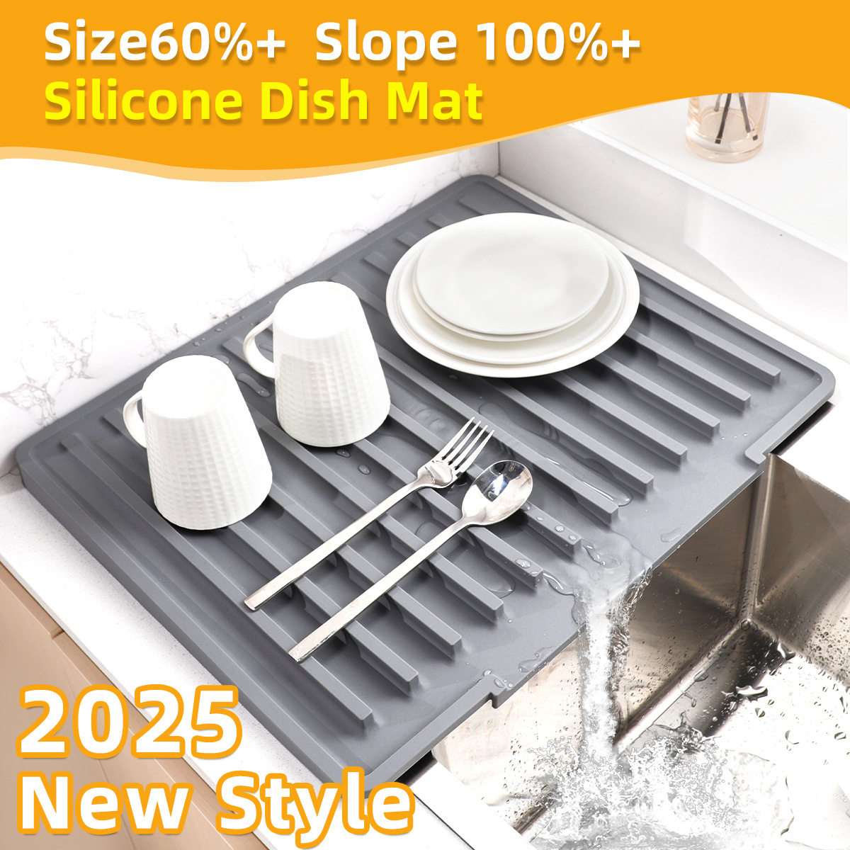 亚马逊新品硅胶水槽垫餐具沥水垫大号斜坡导流排水垫碗碟干燥控水