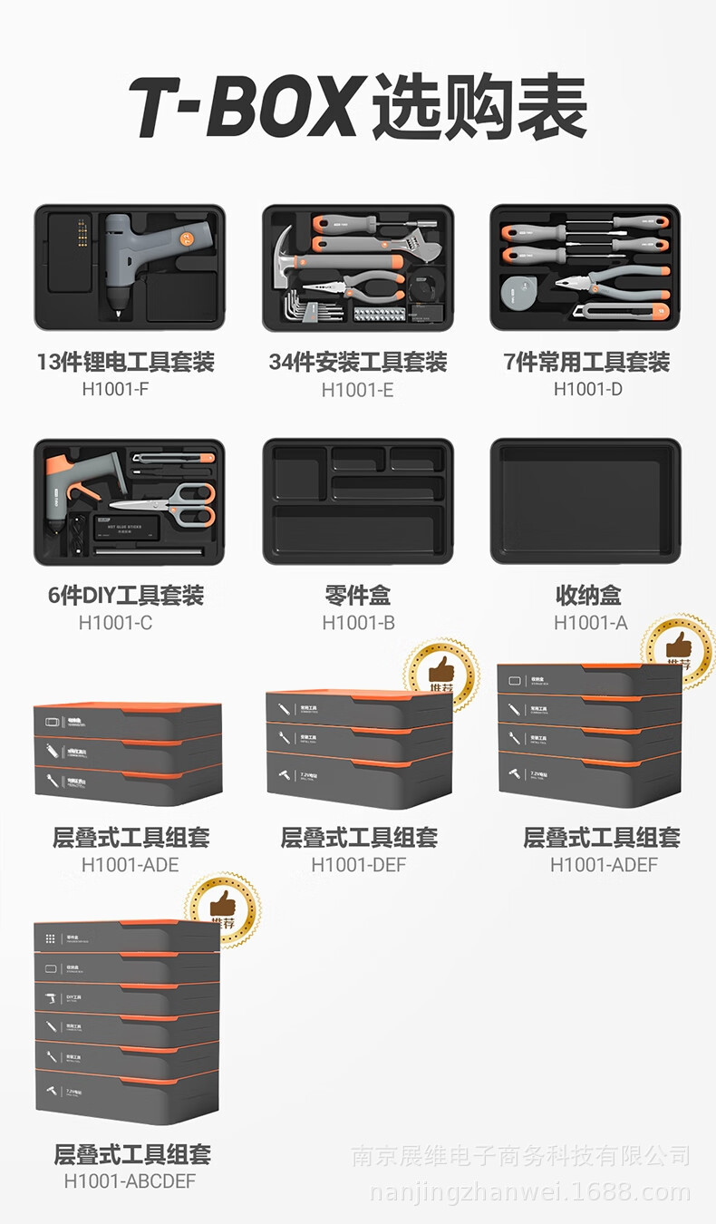 効果的なツール T-BOX 家庭用積み重ねセット 多機能日常メンテナンスツールボックス ハードウェア H1001-D