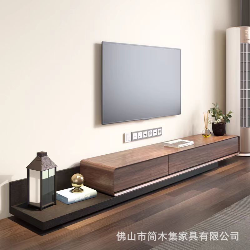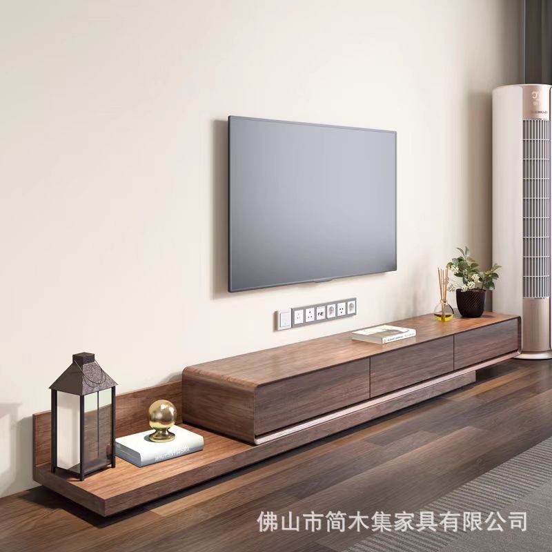 现代简约伸缩电视柜大小户型北欧客厅电视机柜茶几组合胡桃色地柜