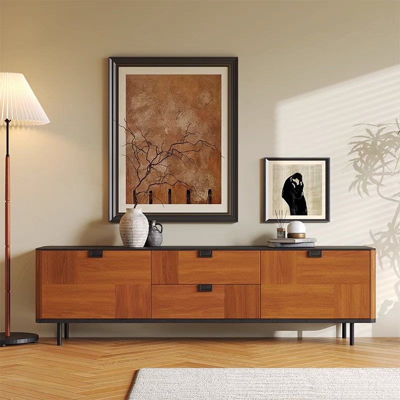 ブラックウォールナットスタイルの収納中古無垢材テレビキャビネットフロアリビングルーム小さなアパートカラーわびさびレトロテレビキャビネット