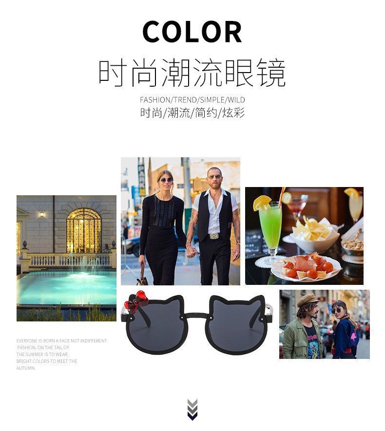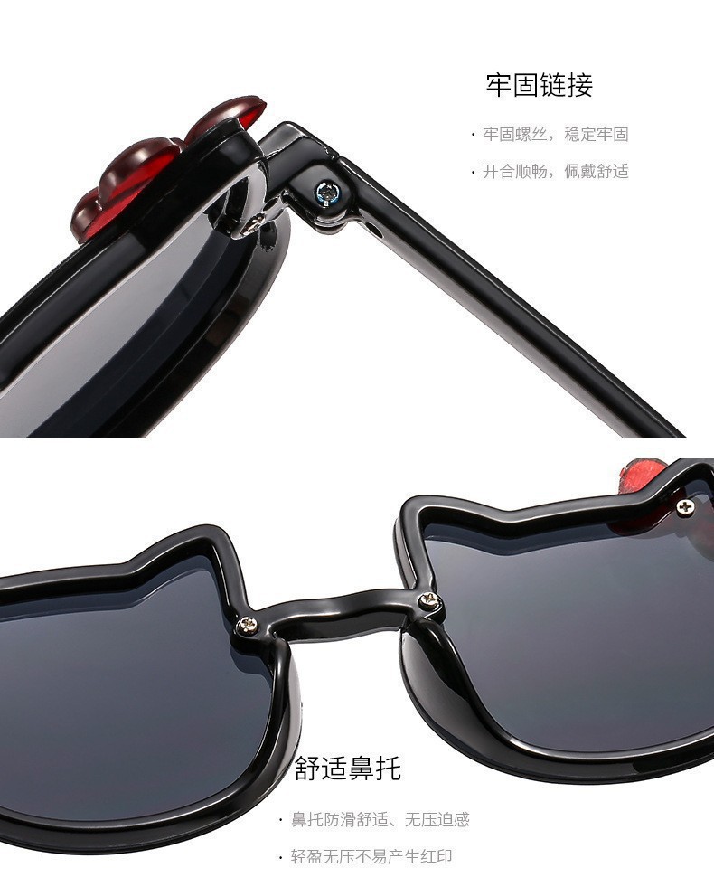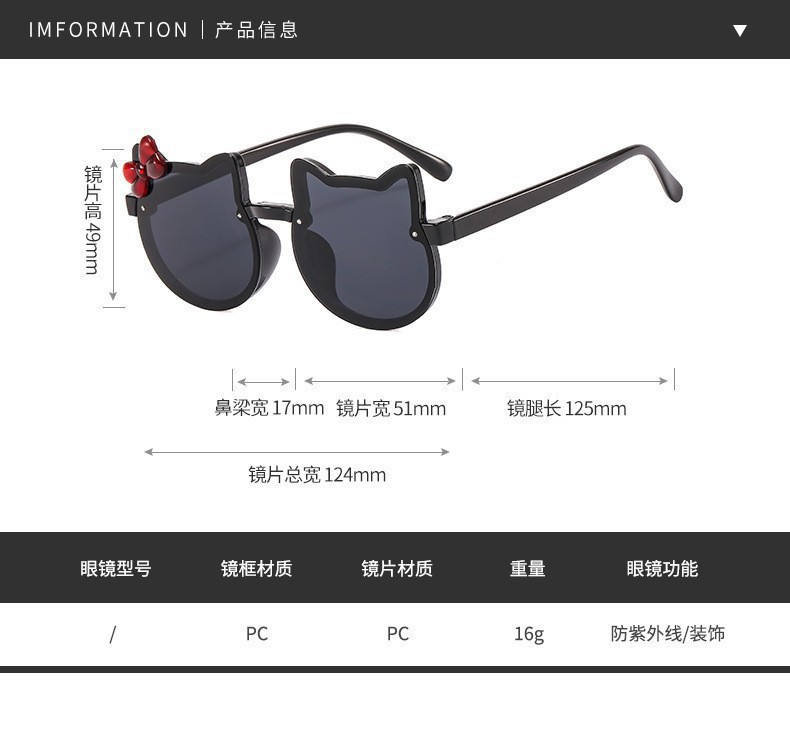 连体框儿童太阳镜可爱卡通蝴蝶结超萌宝宝墨镜防紫外线防晒眼镜