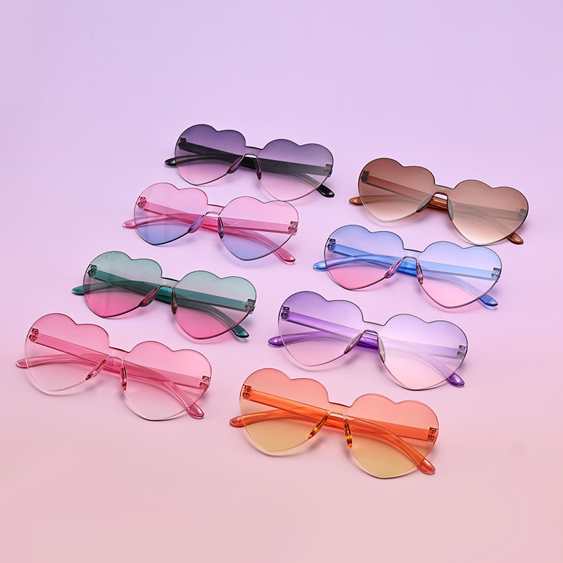 无框心形连体小孩墨镜果冻爱心宝宝太阳镜欧美糖果色桃心儿童眼镜