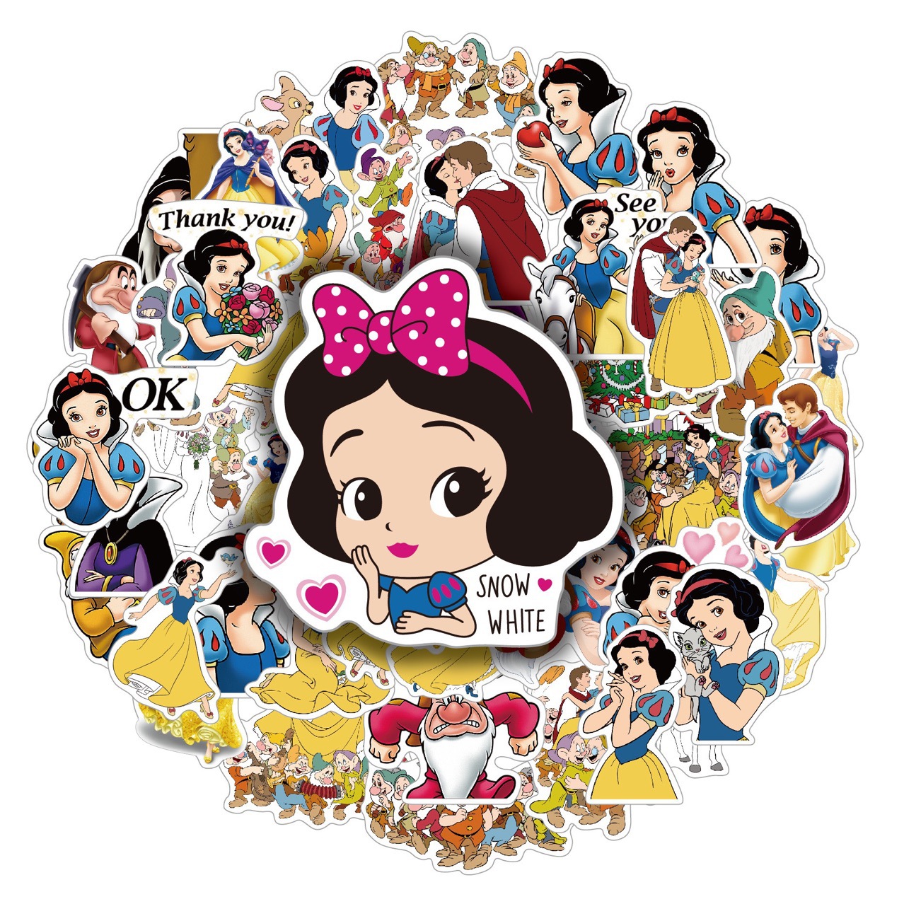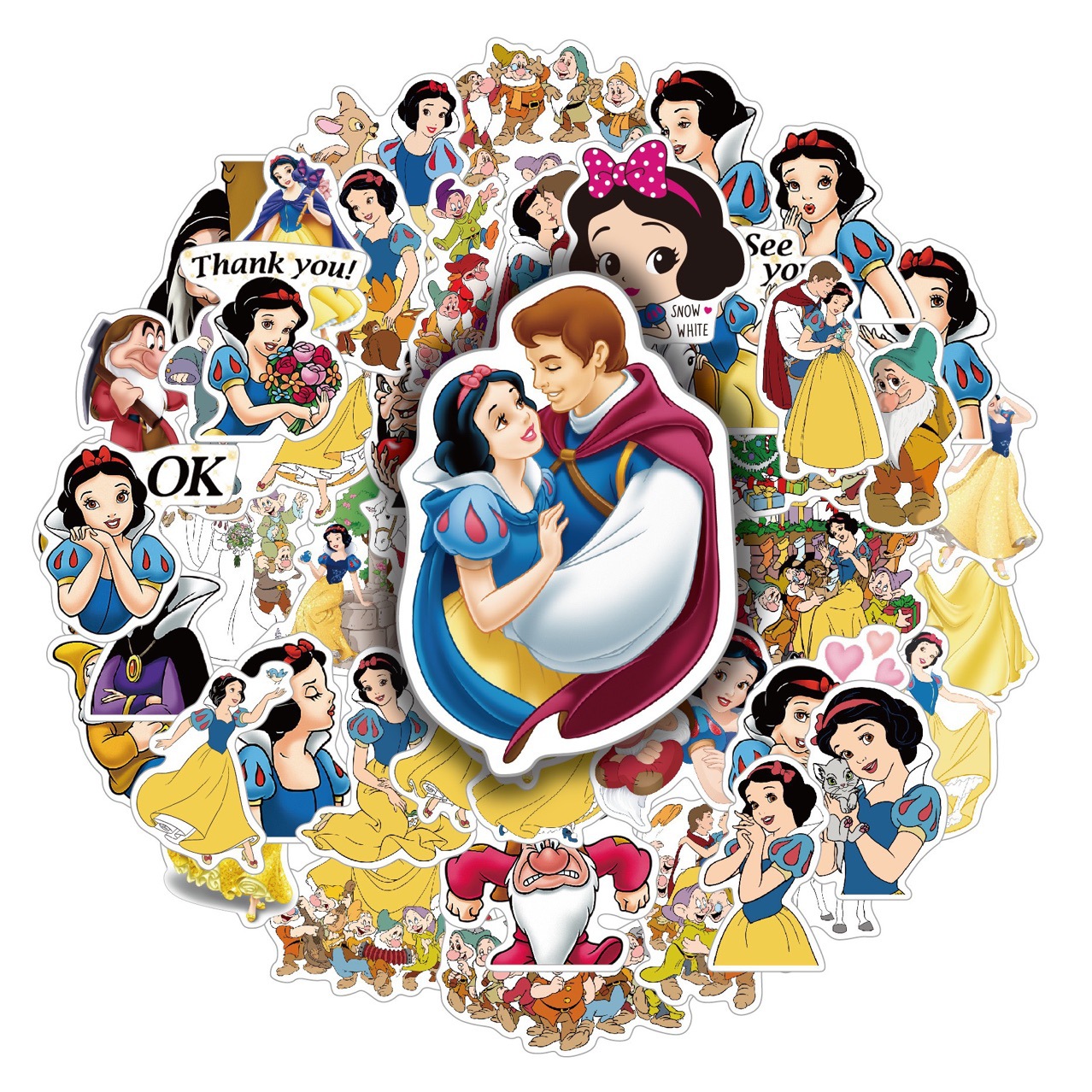 50 枚の非繰り返し白雪姫ステッカー漫画おとぎ話プリンセスステッカー卸売非粘着デスクウォーターカップステッカー