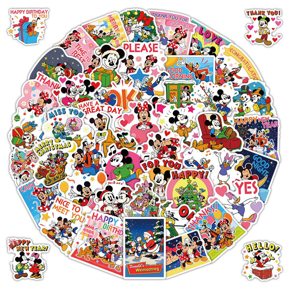 52张卡通圣诞节米奇和朋友们唐老鸭贴纸手账创意手机壳笔记本贴纸