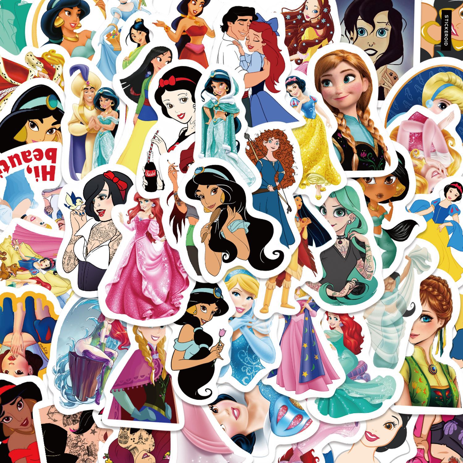 50张童话公主白雪公主合集贴纸高颜值手机行李箱装饰防水贴画批发