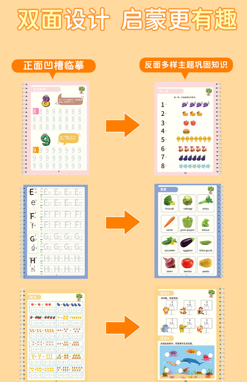 クロスボーダーの幼い接続の溝の練習の字の帖の外国貿易の英語のテキストの啓蒙の趣味の小学生の絵の絵本の絵本