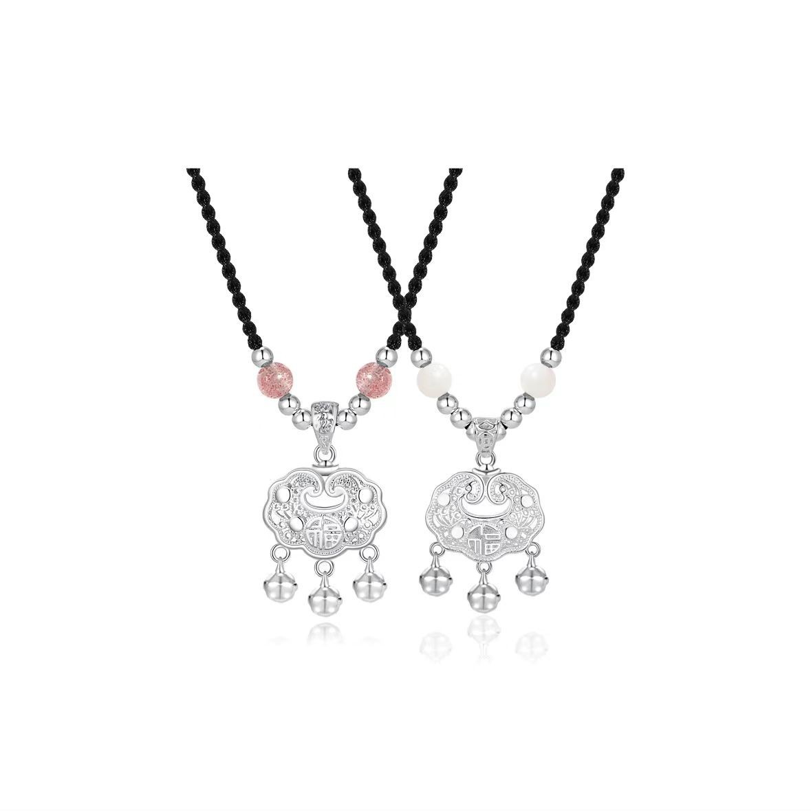 長命鎖平安鎖手編みネックレス福字鈴菩提鎖骨鎖新中国式調節可能