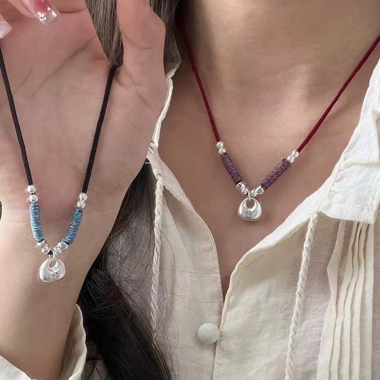 銀坤坤実心銀メッキ平安小太った福袋龍年紅縄ネックレス編み縄カップル男女卸売り