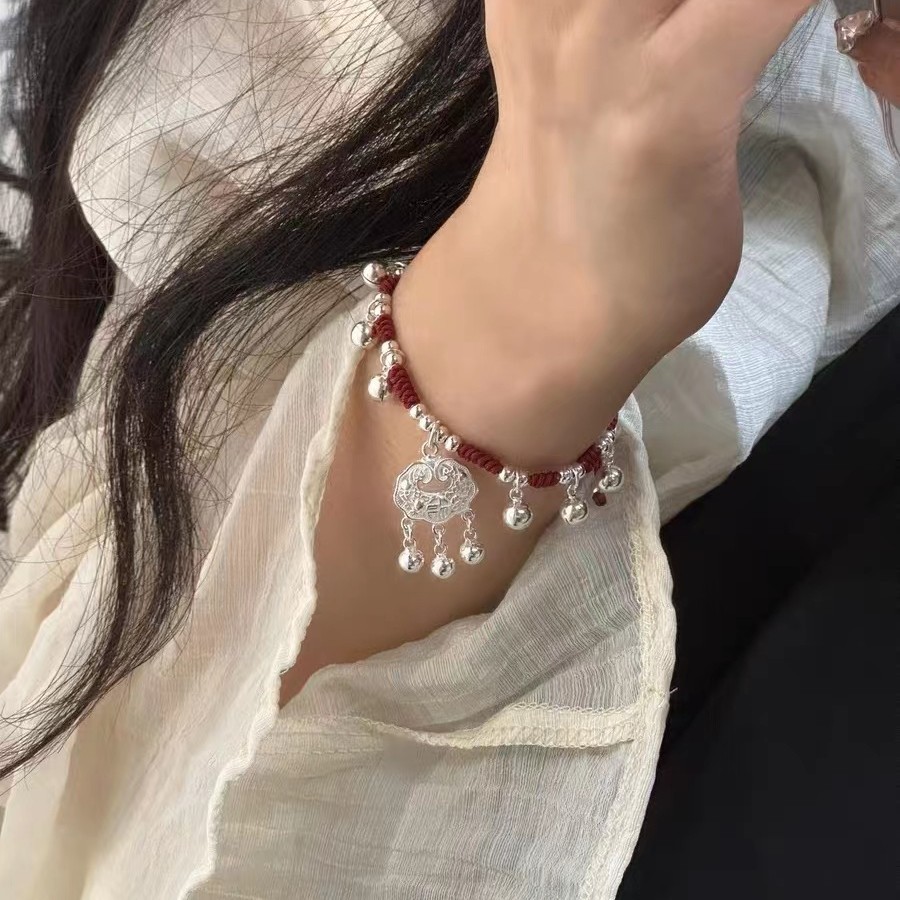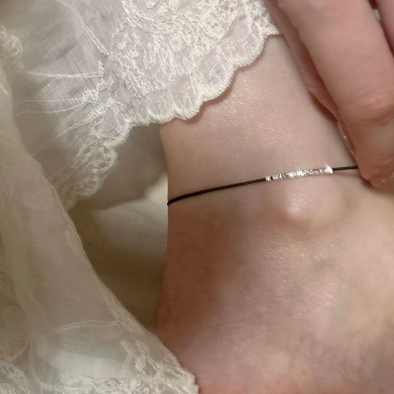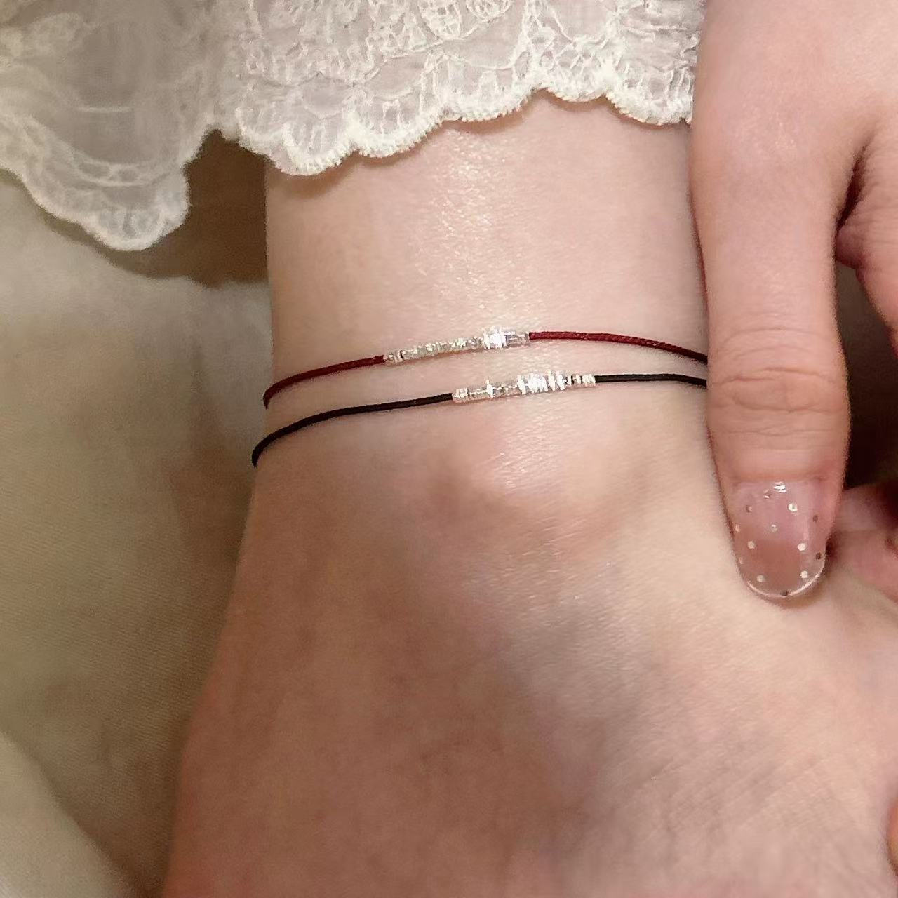 ブロークンシルバーレッドロープブレスレット女性のニッチデザインライト高級ハイエンド新しい中国風の気質多用途中国風ブラックロープアンクレット