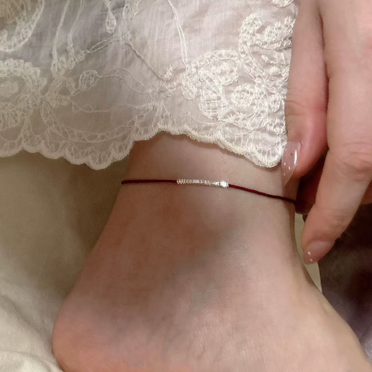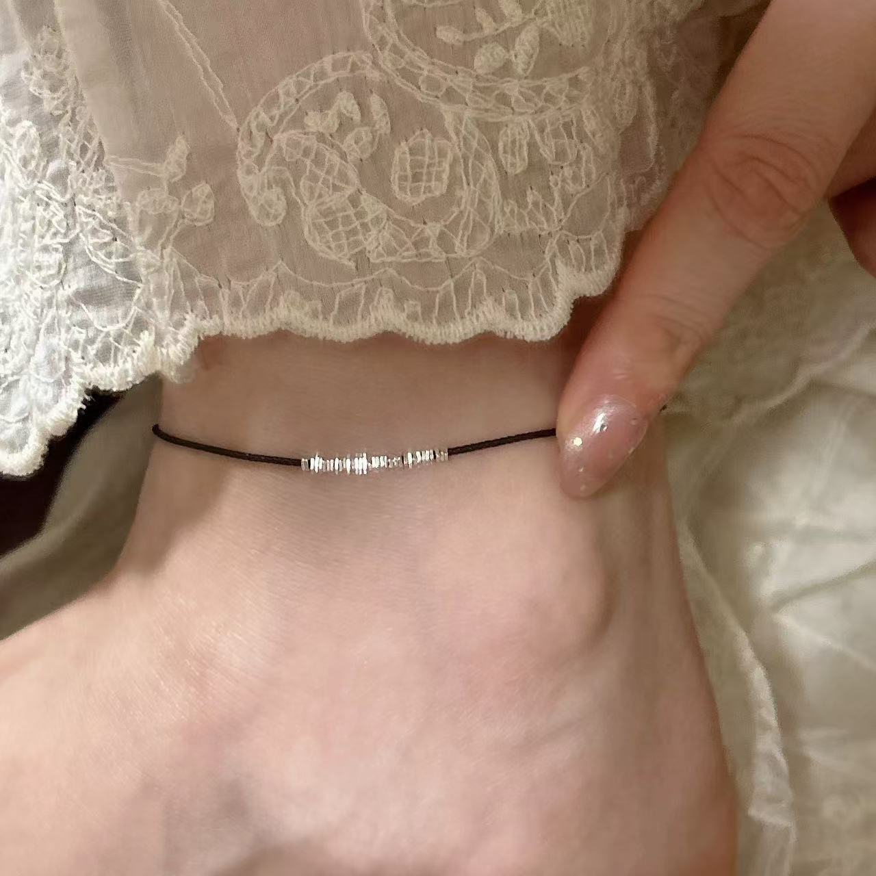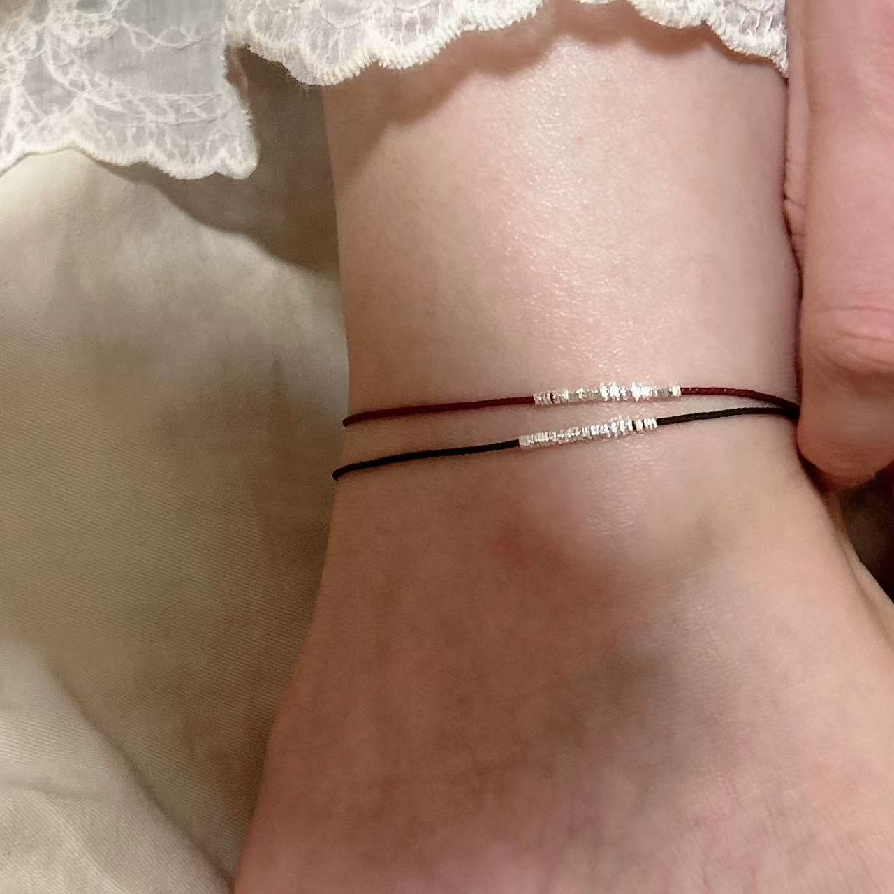 ブロークンシルバーレッドロープ小さな黒ロープアンクレットニッチデザインシンプルで多用途のシングルウェアスタックアンクレット女性用卸売