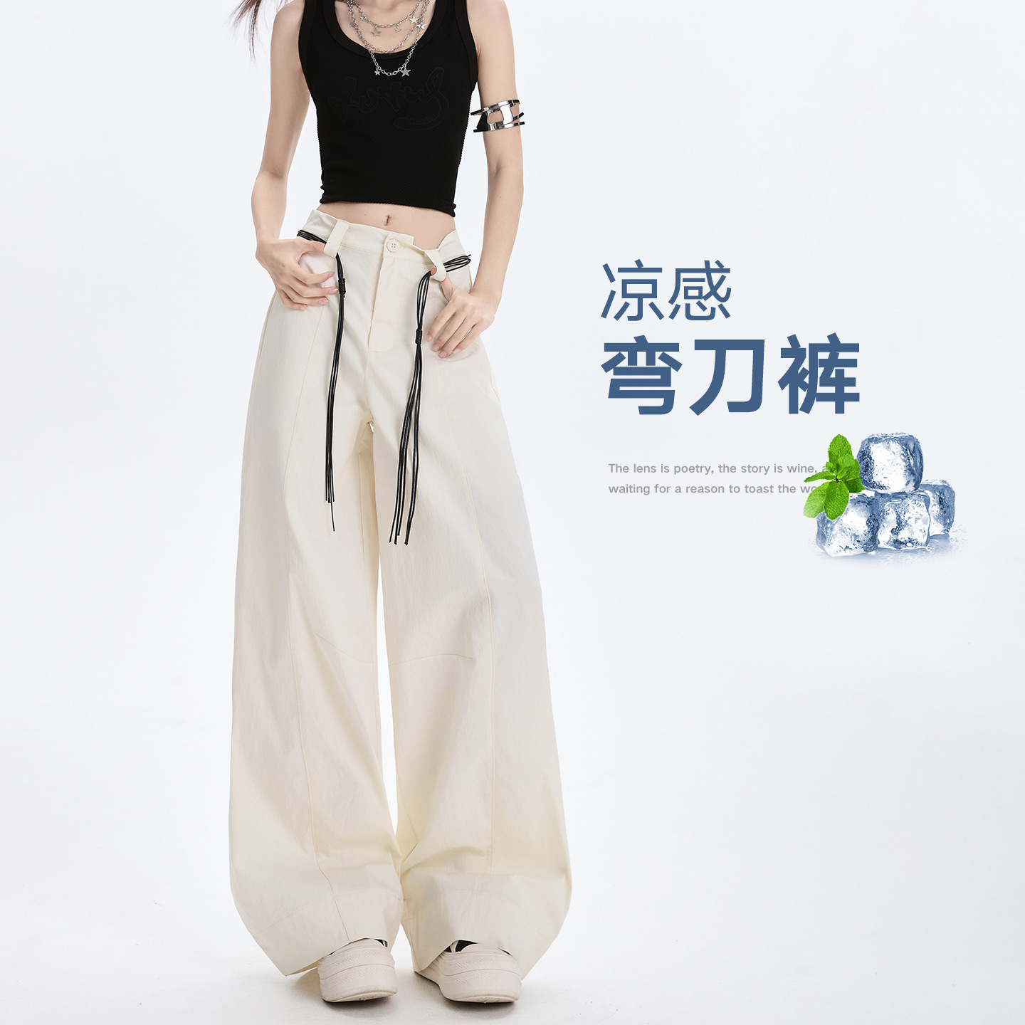 杏色休闲阔腿裤女夏季垂感2025新款高腰宽松慵懒松弛感凉凉直筒裤