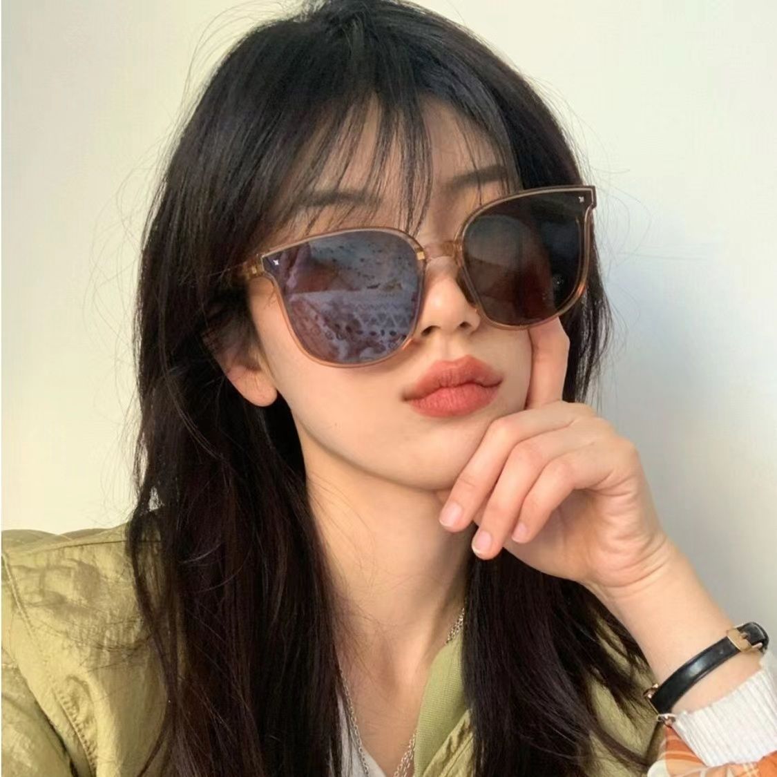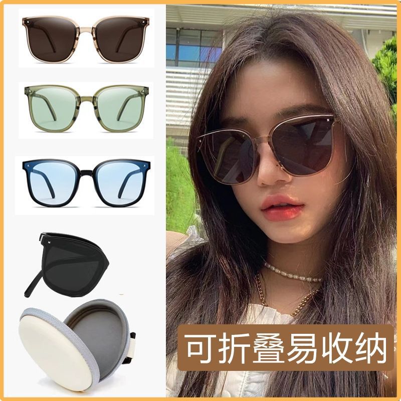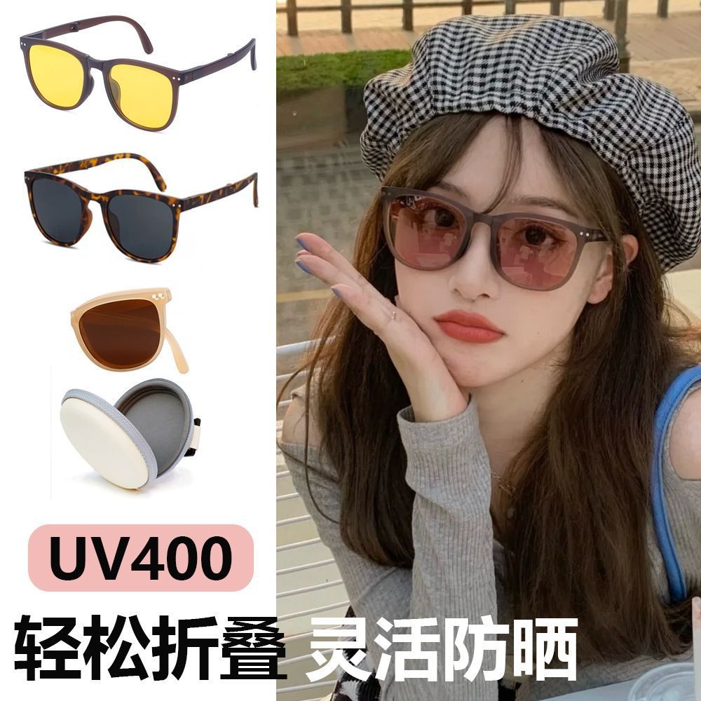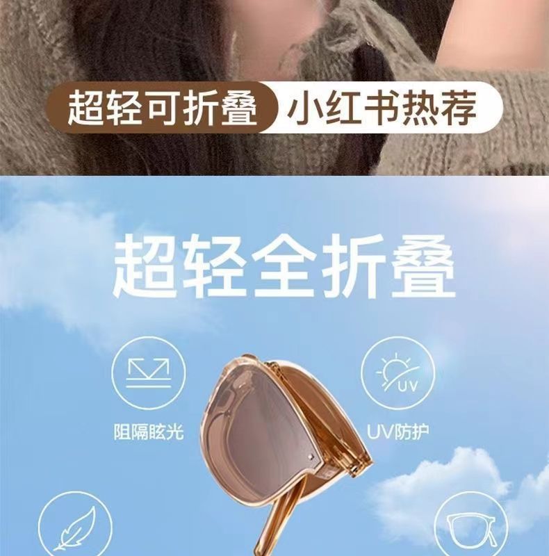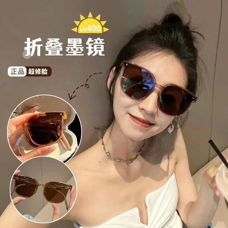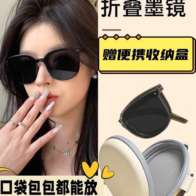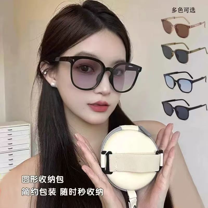 新しい女性用折りたたみサングラス、黒梅紫顔露出ライブサングラス、夏の紫外線防止メーカー送料無料