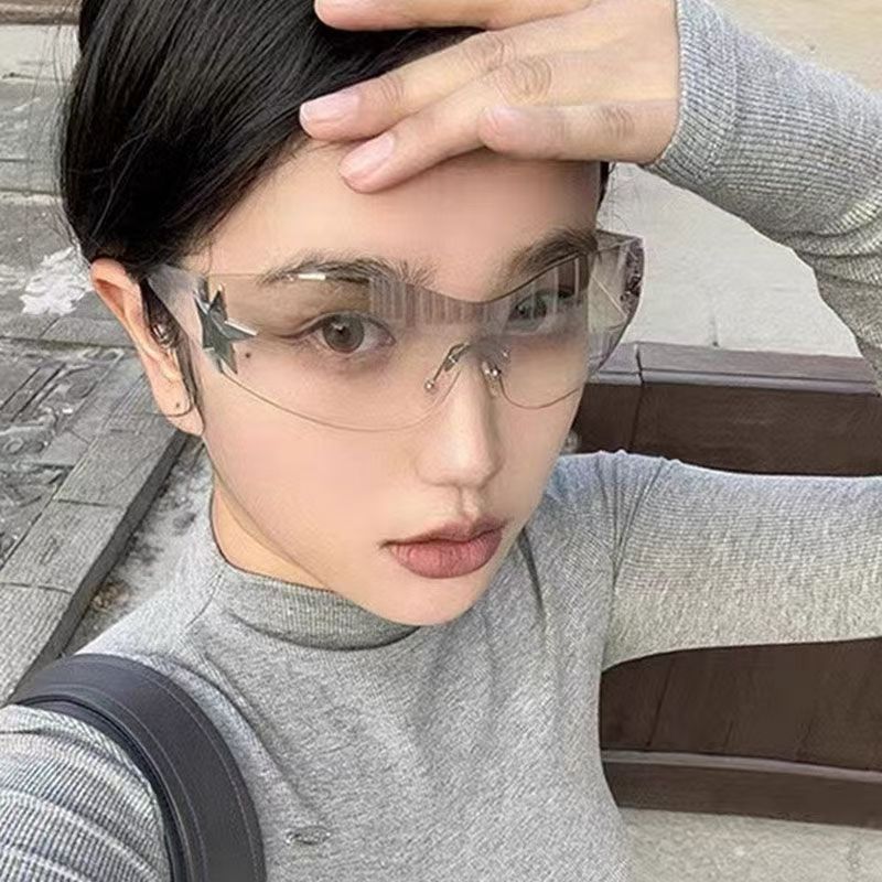 新款连体无框五角星星墨镜千禧辣妹街拍y2k眼镜女欧美个性太阳镜