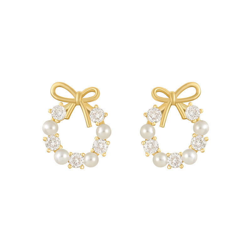真珠の蝶結びのイヤリングは2025年に新型の潮の小さい大衆の設計の高級感のイヤリングの女性の軽豪華な百合の耳の装飾品です。