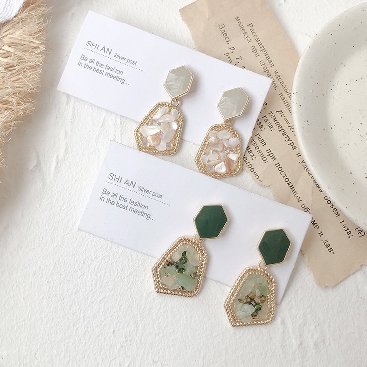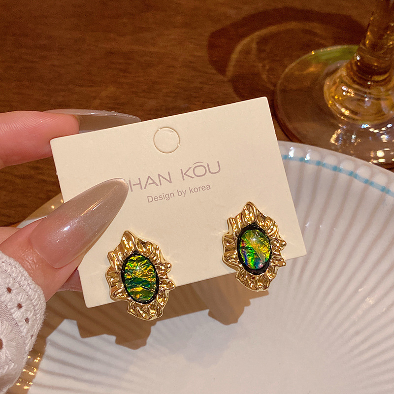欧美宫廷风中古vintage复古气质滴油金属耳环女仿绿宝石耳饰品女