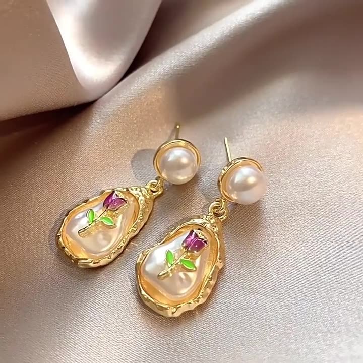 モネの花油絵スタイルバロックパールイヤリング女性の個性レトロイヤリング 2025 人気のハイエンドイヤリング
