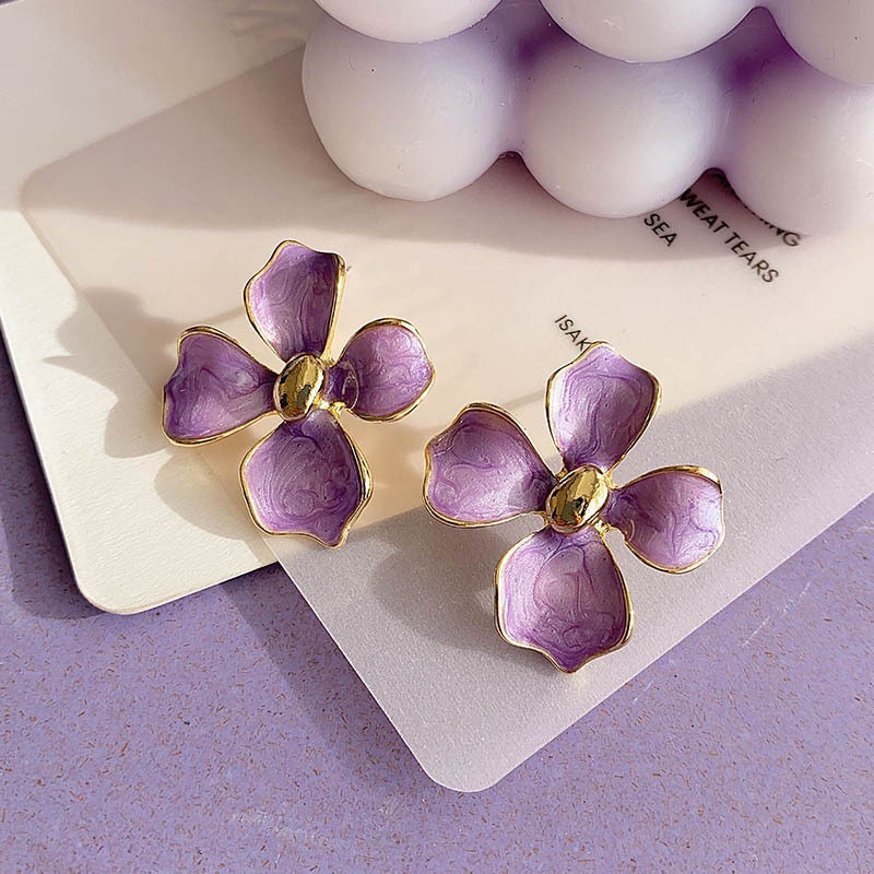 新しいスーパーフェアリーパープルオイルドリップ四つ葉のクローバーイヤリング花甘いイヤリング女性ニッチ気質ライト高級イヤリング卸売