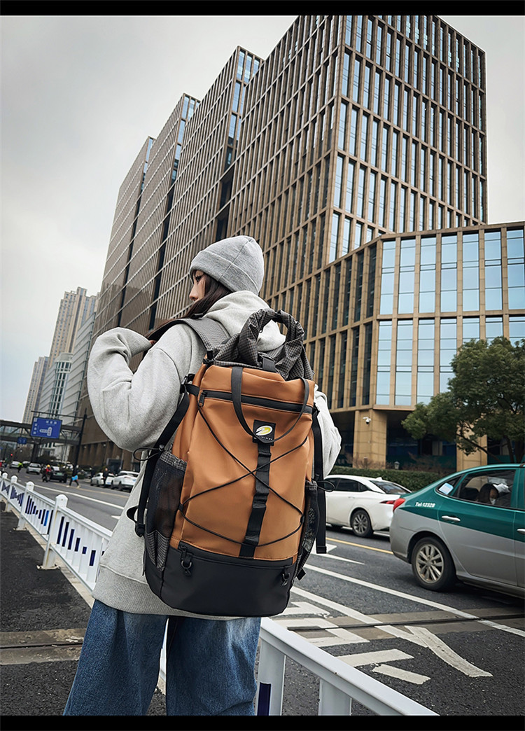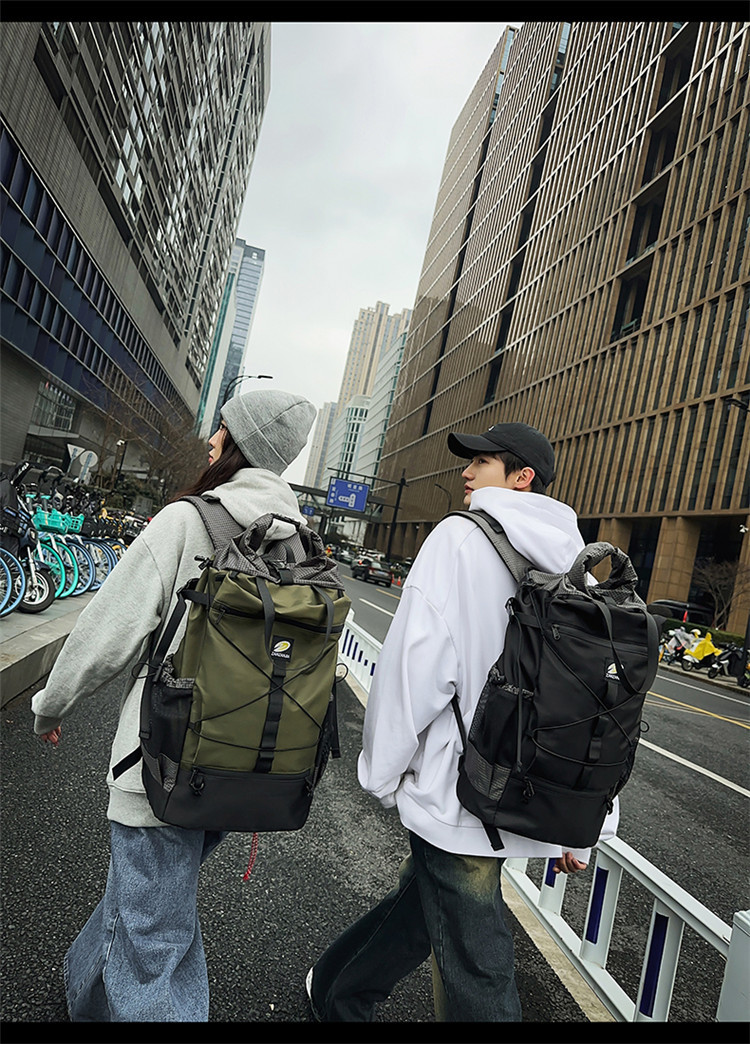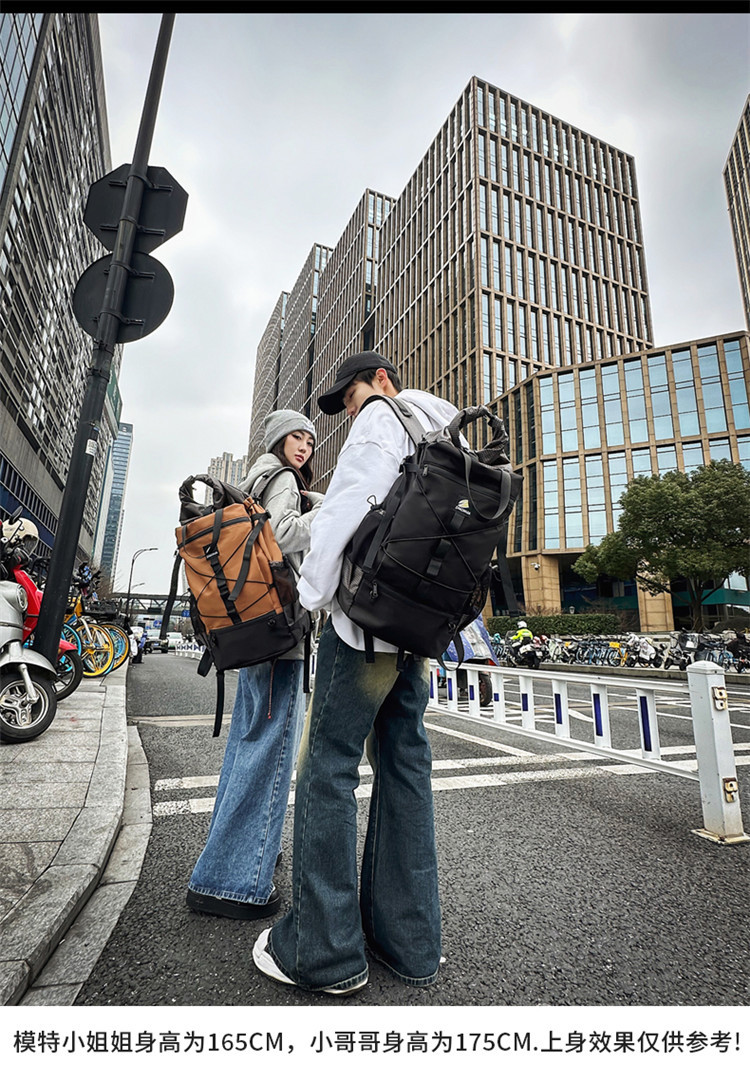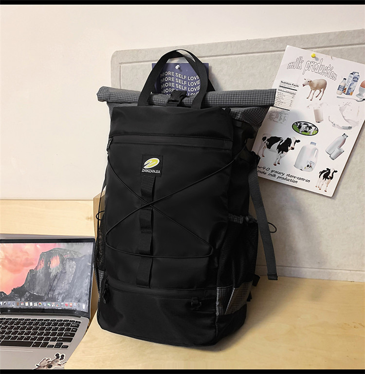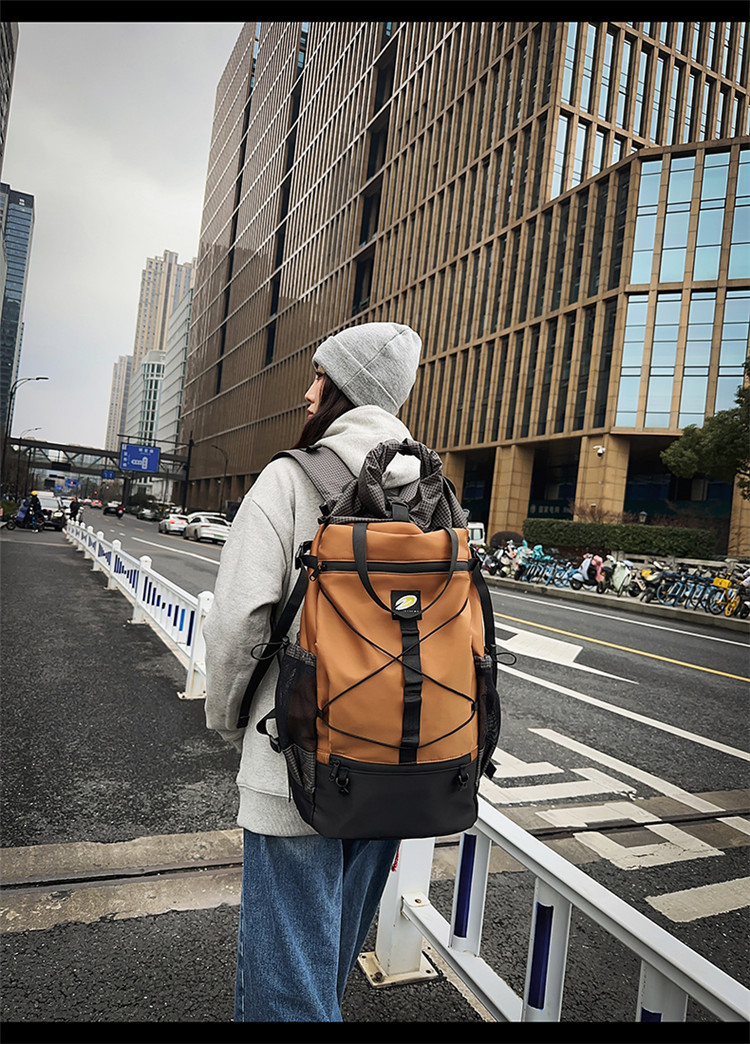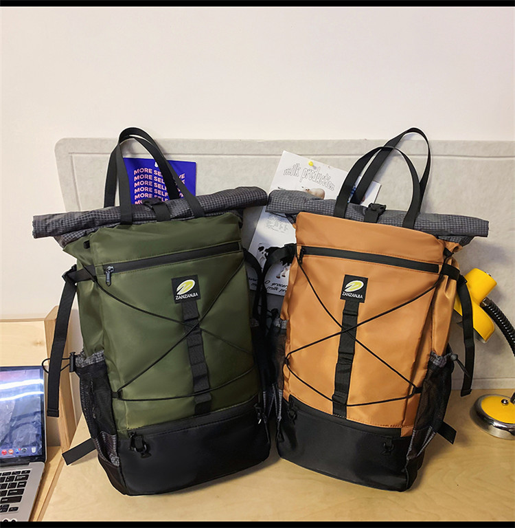 旅行リュックサック男性用スポーツ旅行アウトドア巻き口大容量登山バッグ男女徒歩リュックサックデザイン感