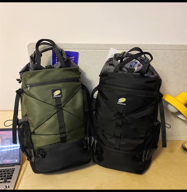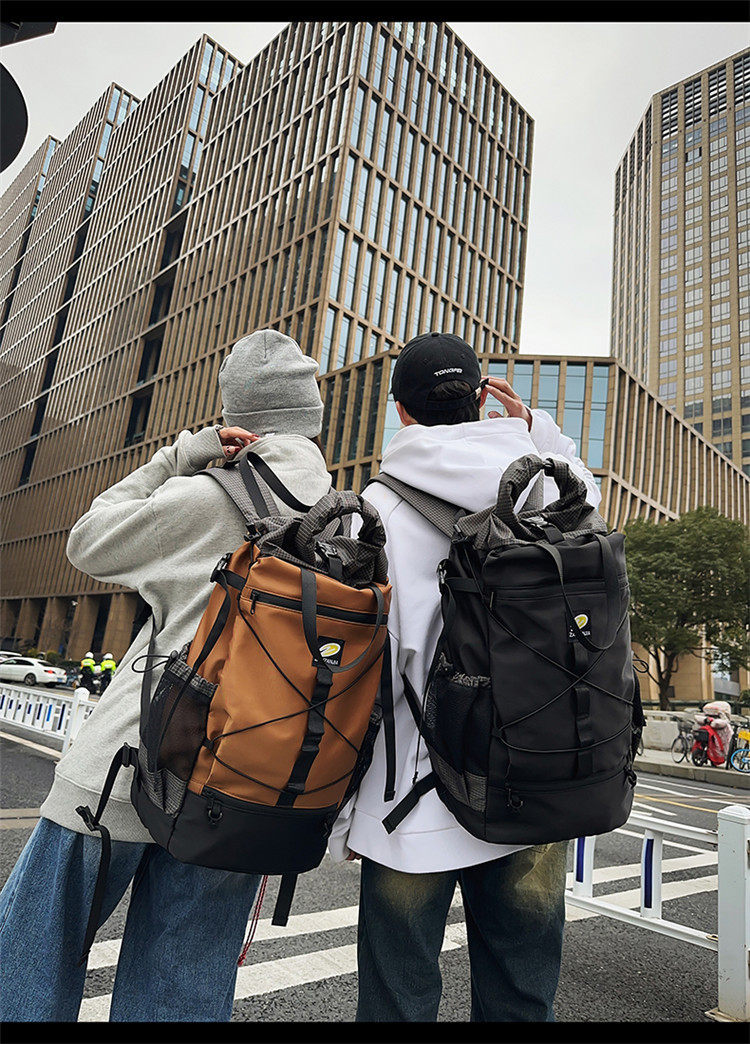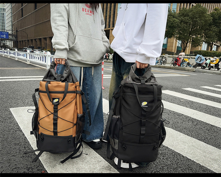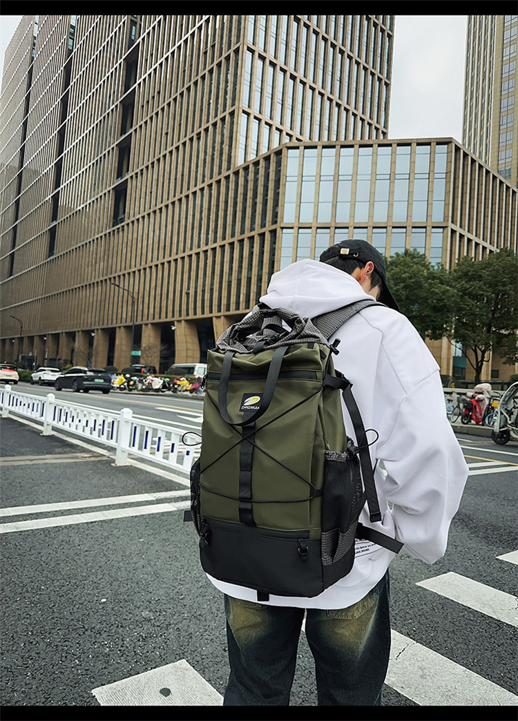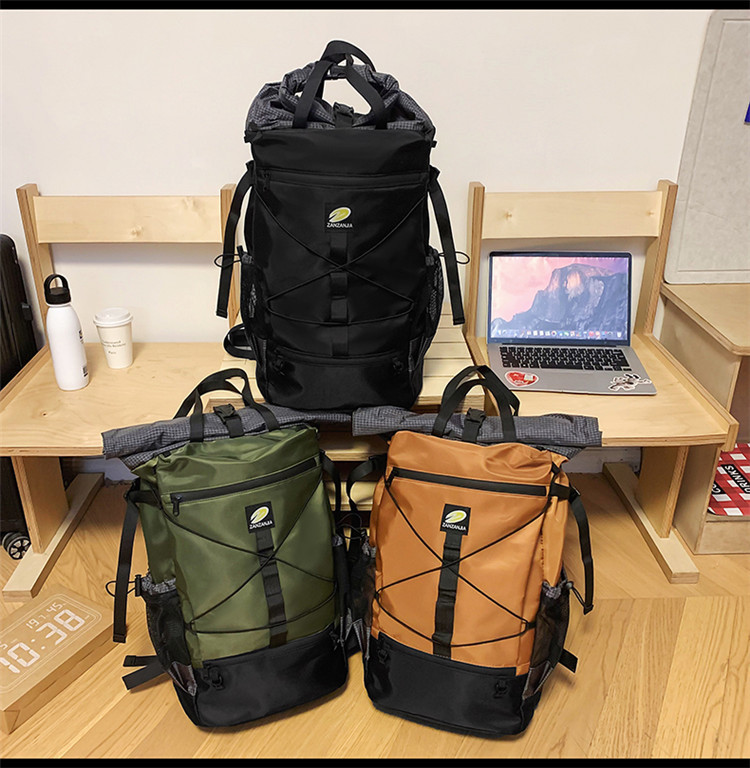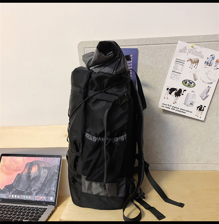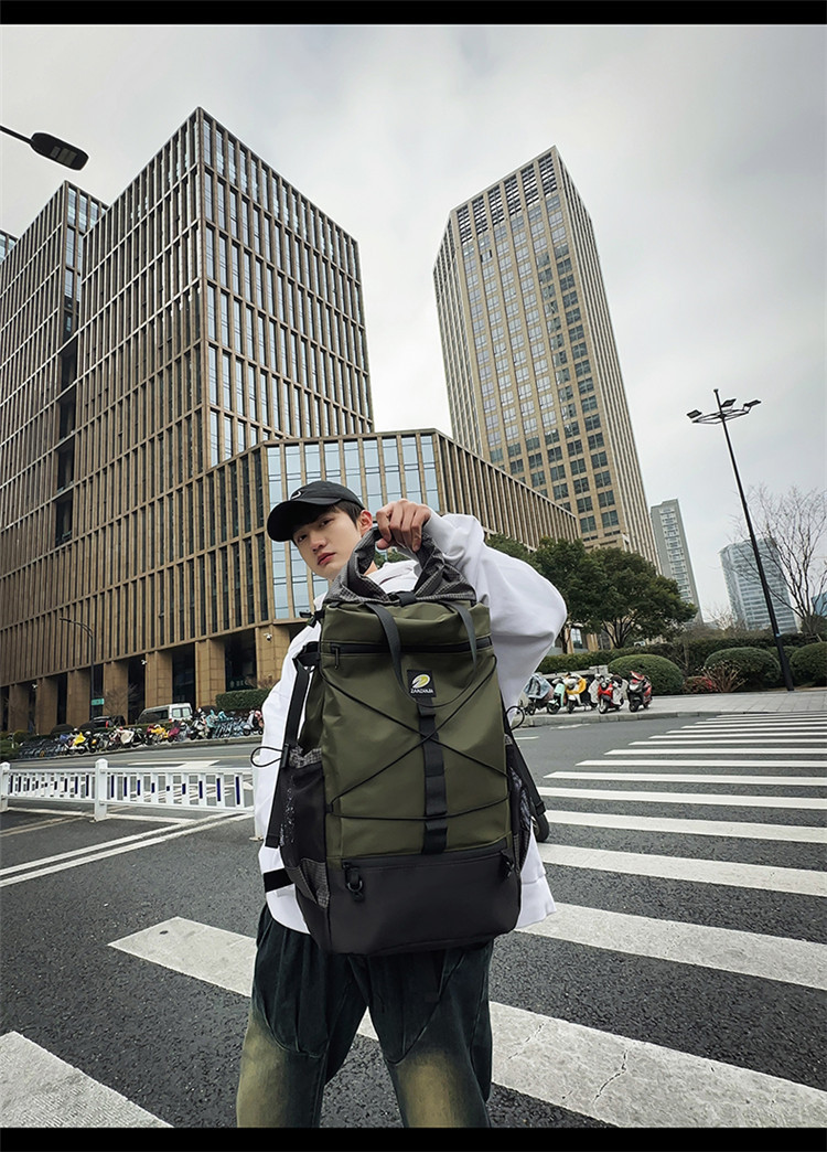 旅行リュックサック男性用スポーツ旅行アウトドア巻き口大容量登山バッグ男女徒歩リュックサックデザイン感