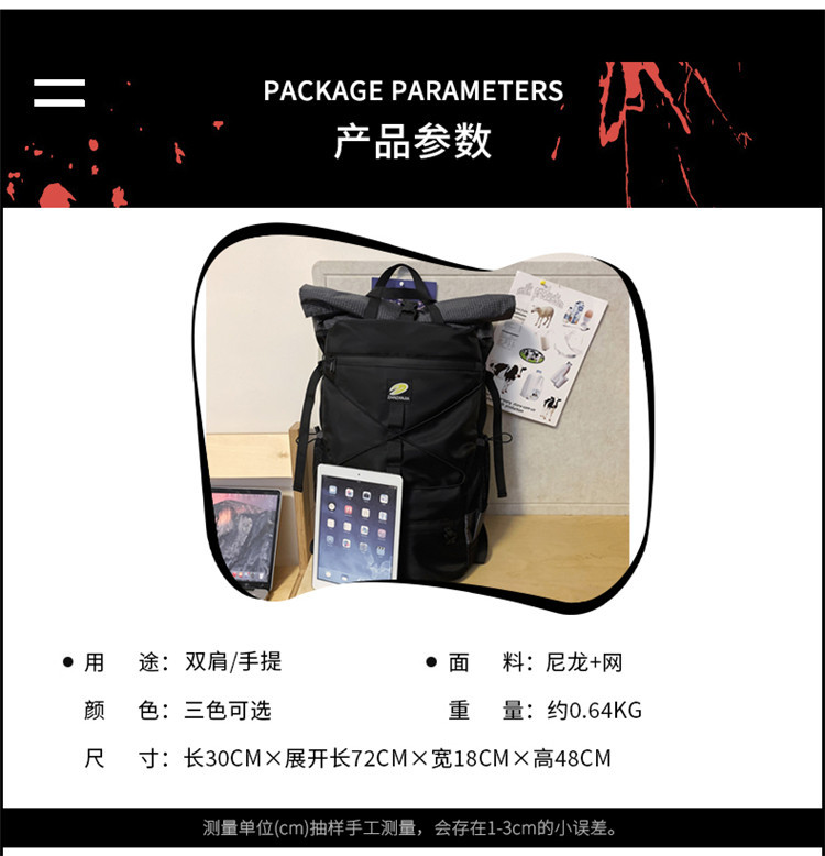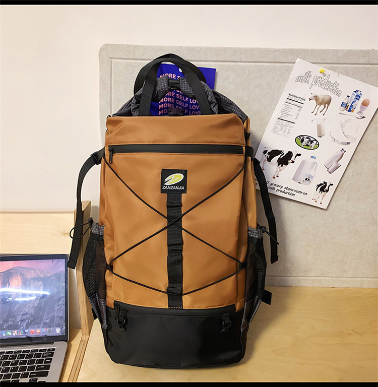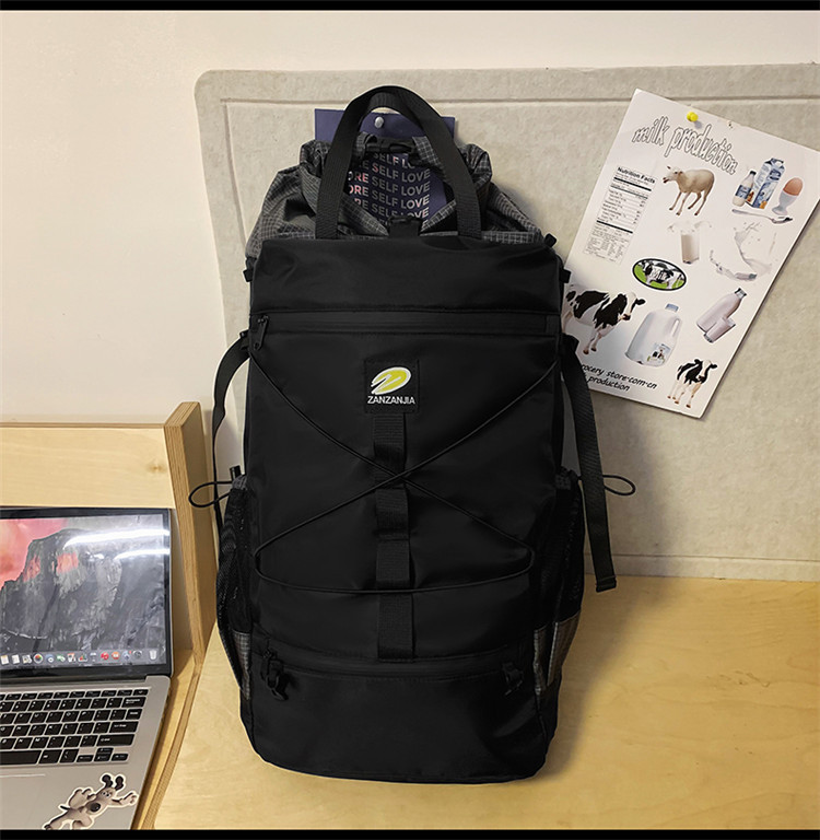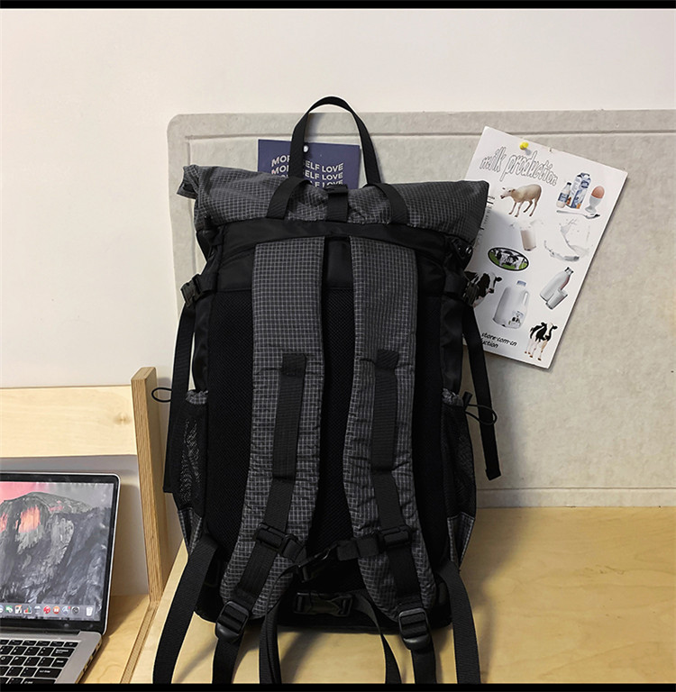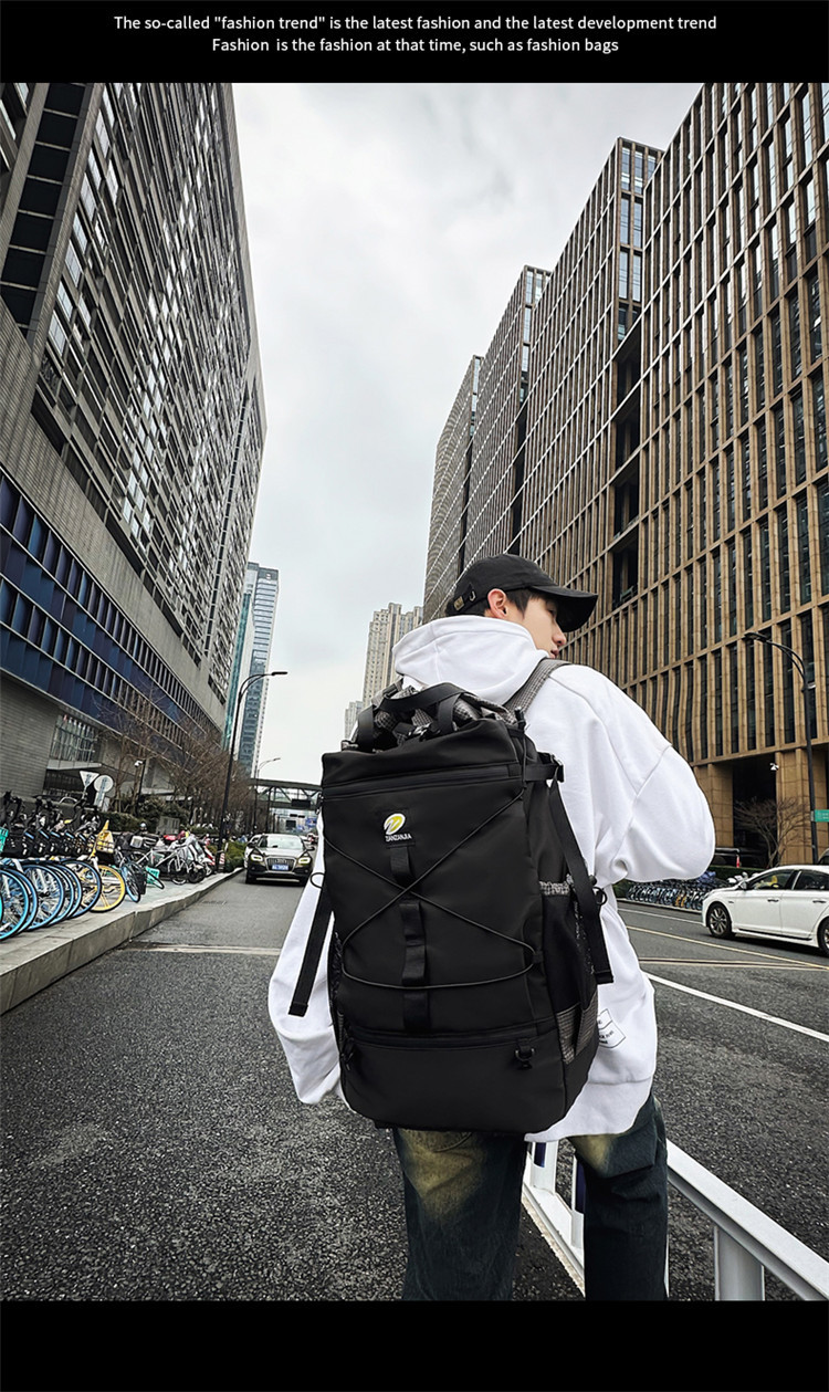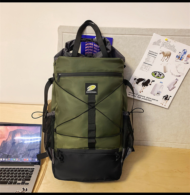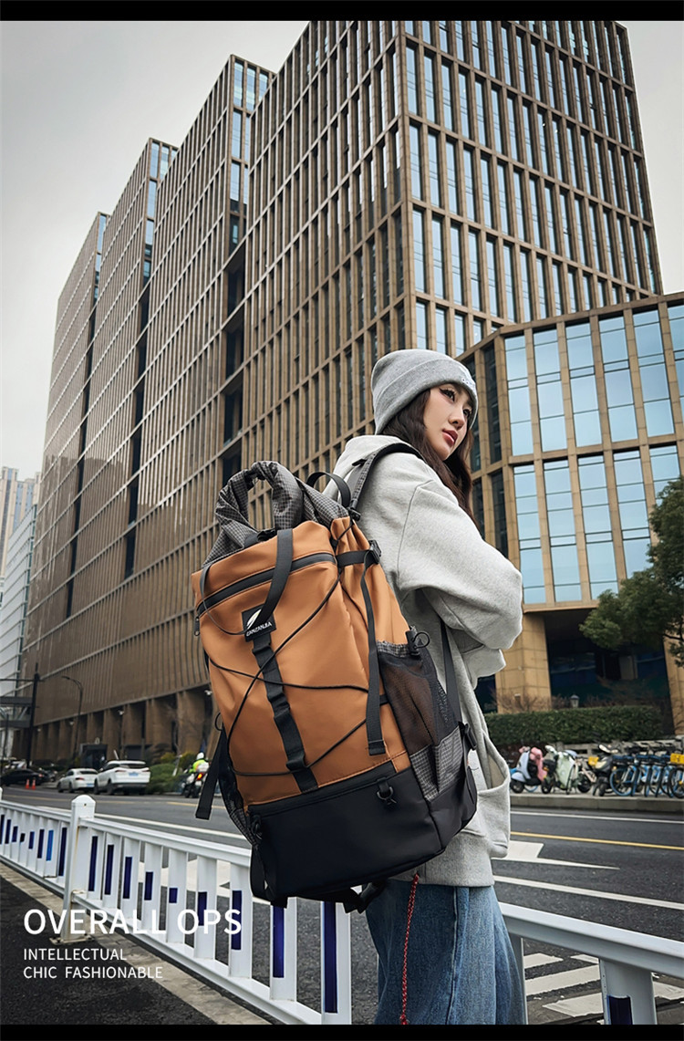 旅行リュックサック男性用スポーツ旅行アウトドア巻き口大容量登山バッグ男女徒歩リュックサックデザイン感