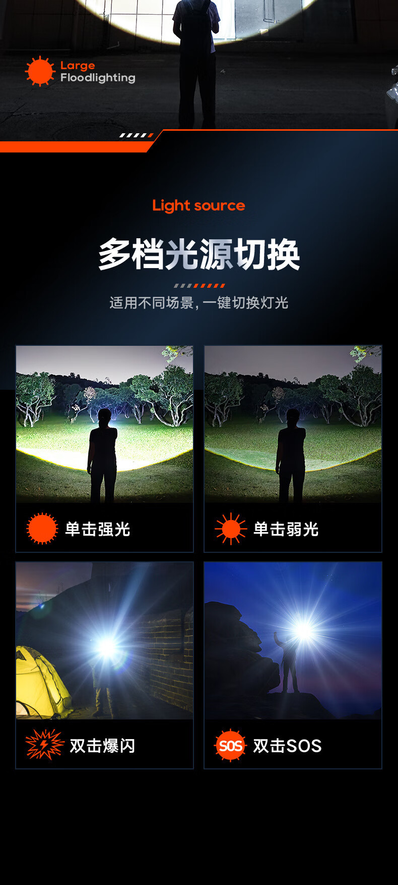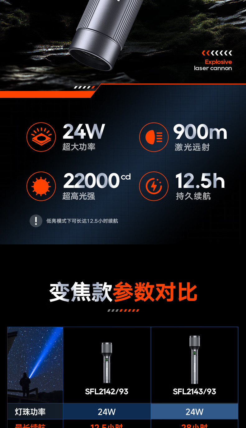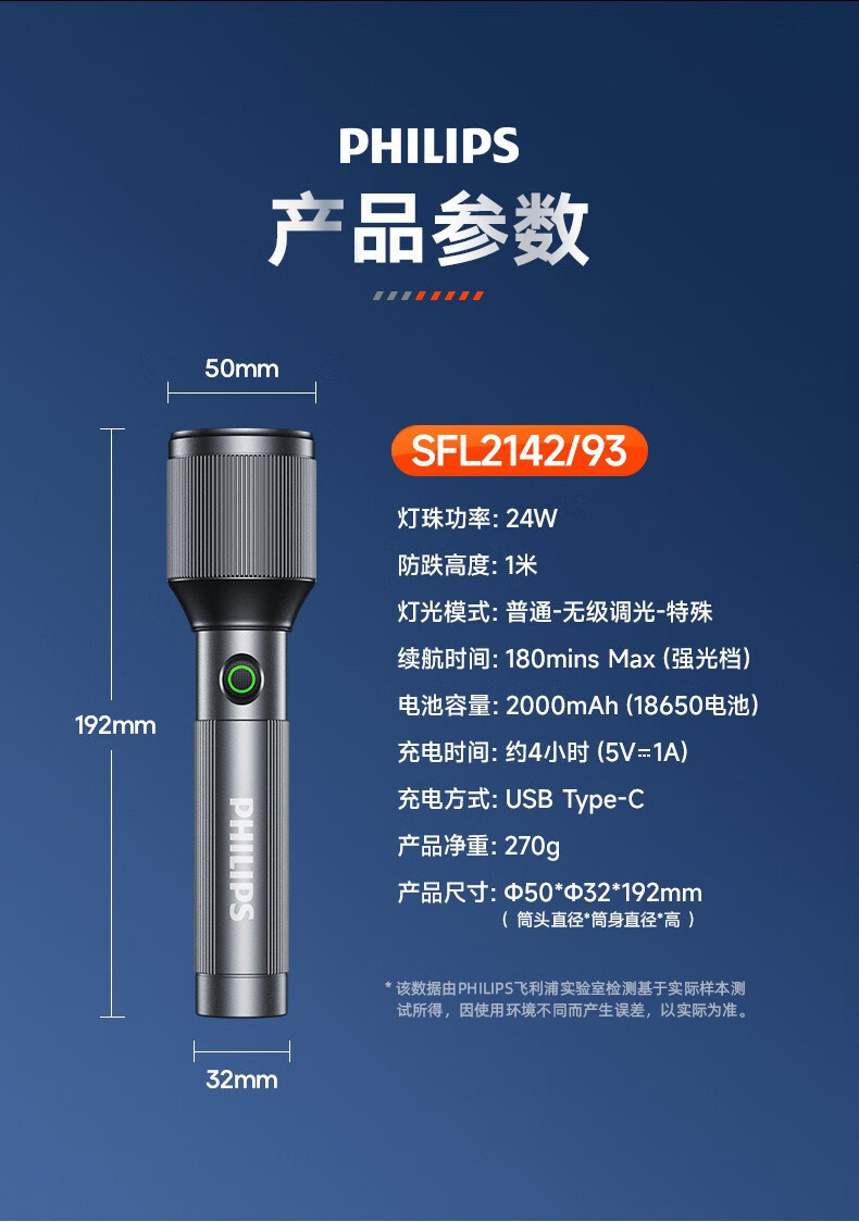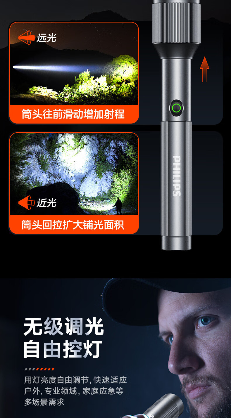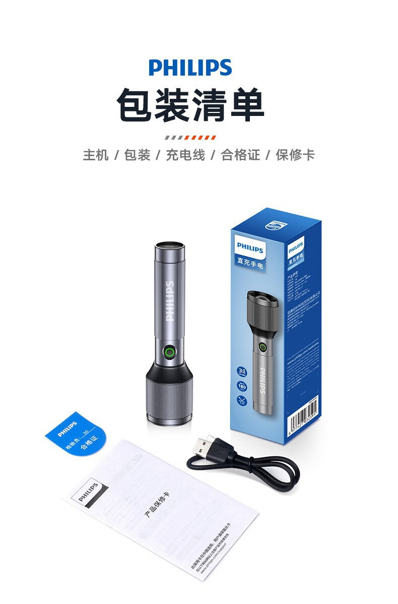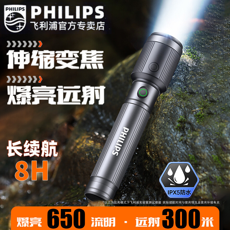 飞利浦强光手电筒超亮变焦充电户外远射家用便携超长续航SFL2141