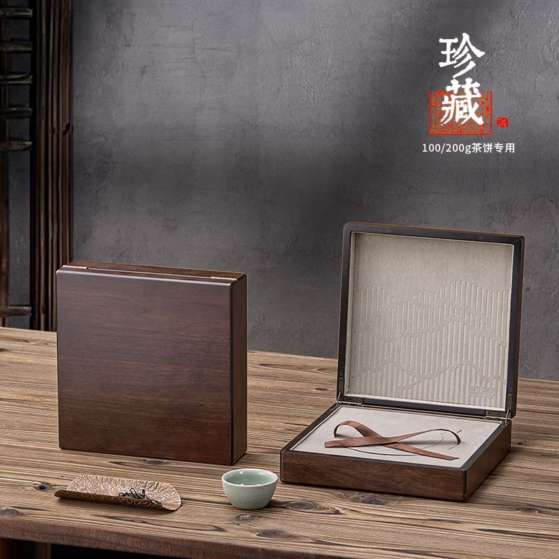 箱境プーアル茶100g200g357ga茶餅礼箱木製カバー現物空茶餅包装箱