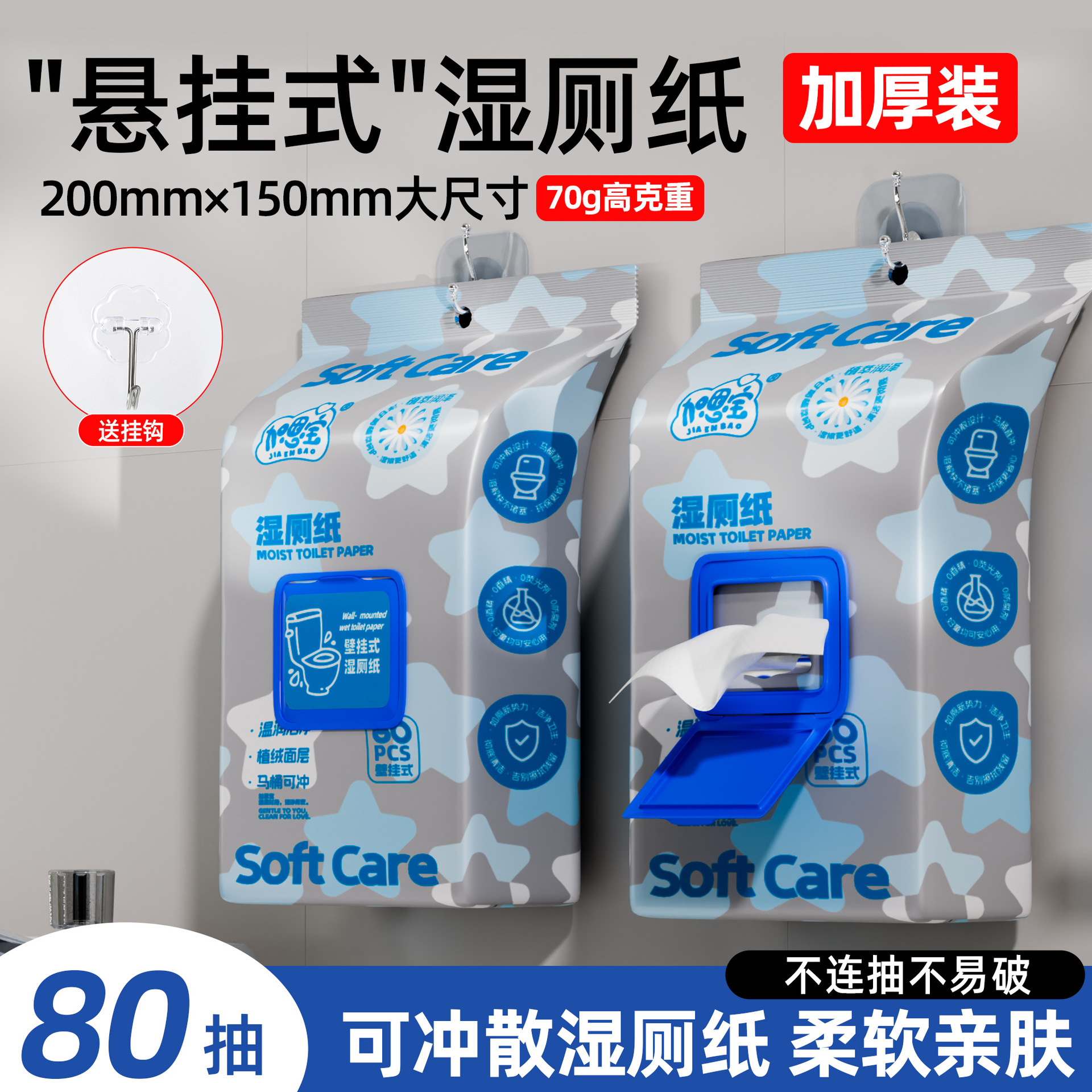 悬挂式湿厕纸家庭装80片擦屁股湿巾纸卫生纸湿纸巾家用特价湿厕纸