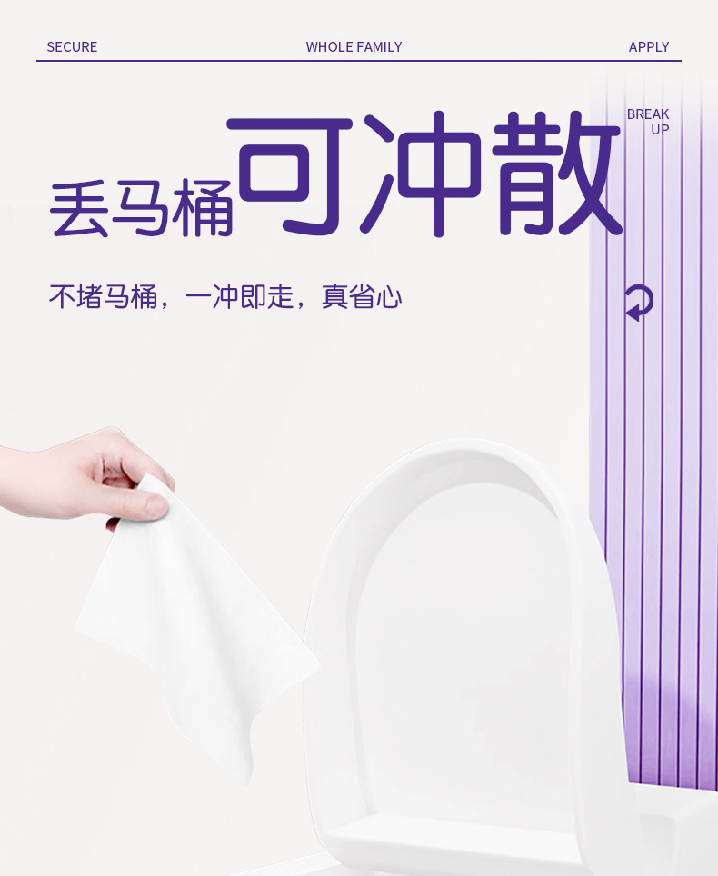 一次性悬挂便携式家用可点断湿厕纸湿巾可冲散分解男女通用专用
