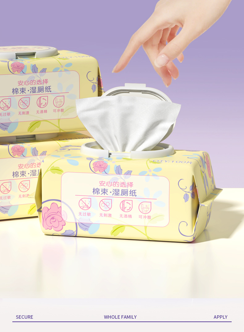 綿の束の壁掛け式の濡れたトイレットペーパー80は家庭用の男性女性の通用のウェットティッシュを引き出してお尻のトイレットペーパーのウェットティッシュを拭きます。