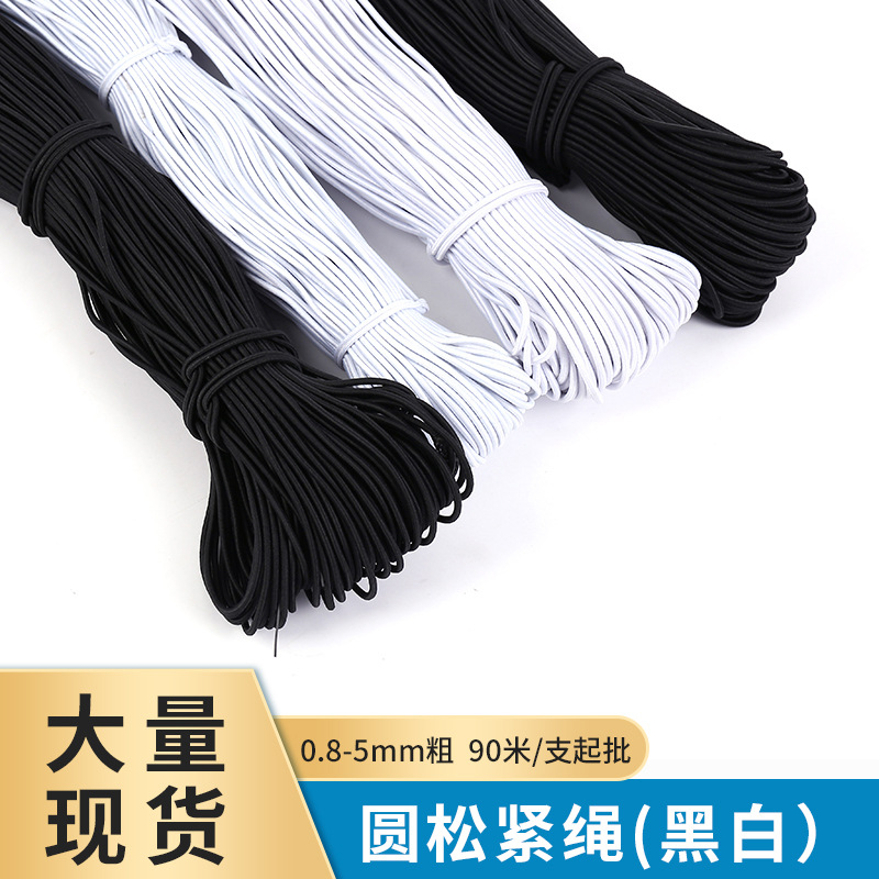 メーカースポット卸売り丸弾性バンド黒2mmトランポリン弾性ロープゴム筋ロープ補助材料白1mm弾性ロープ