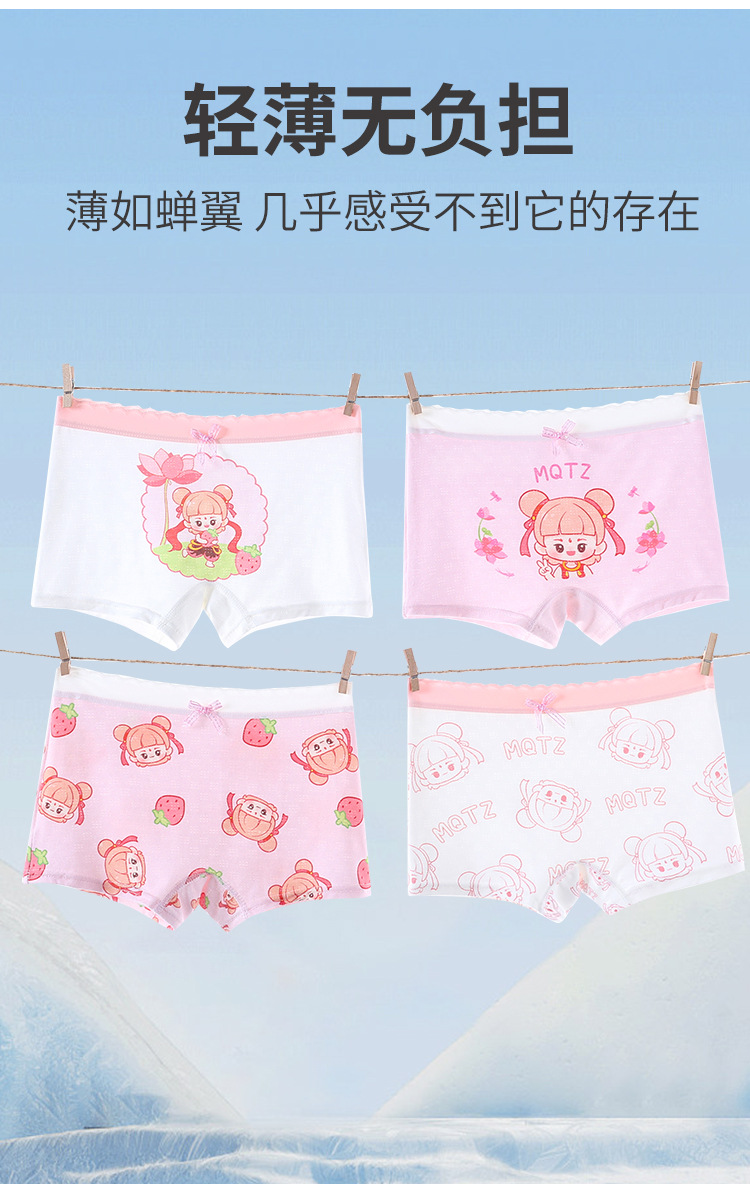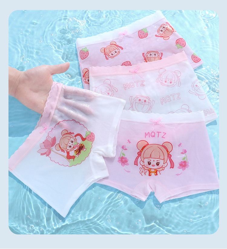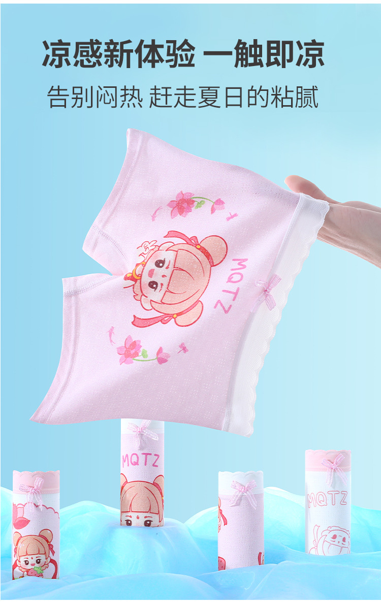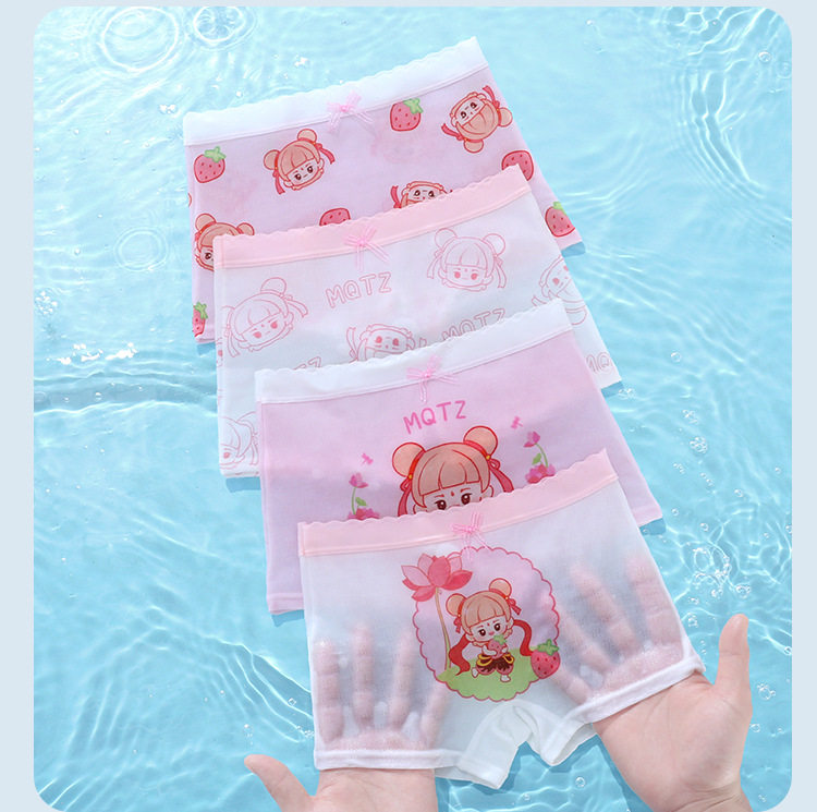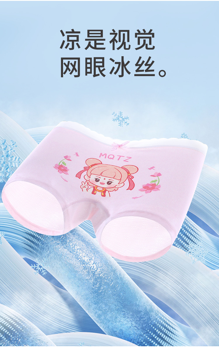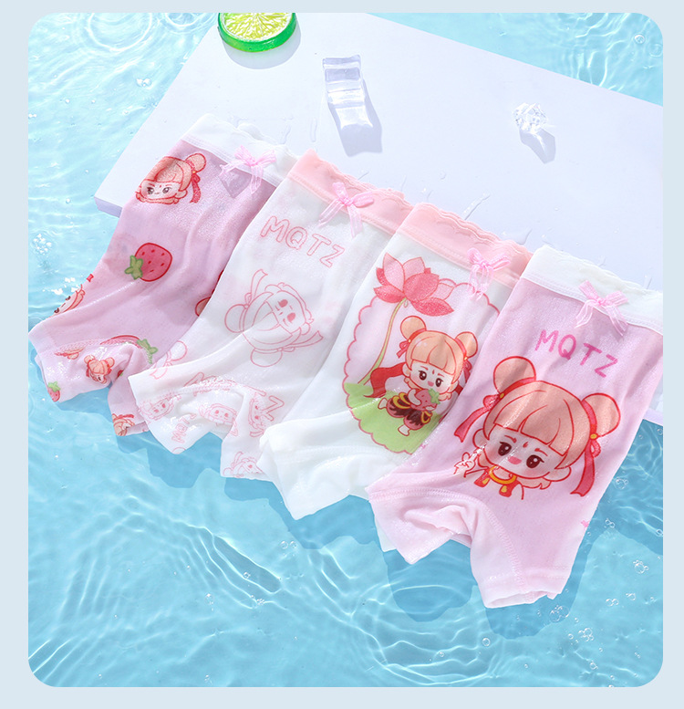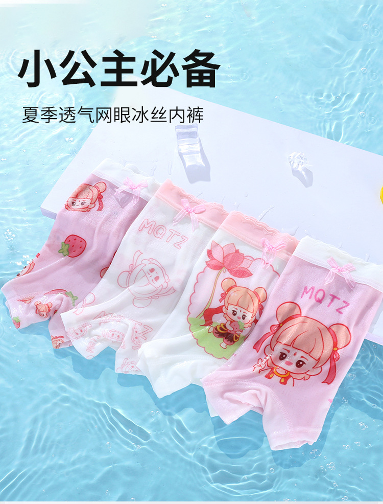 【ネザーガールズ下着】10A抗菌アイスシルク下着、肌に優しい、お尻を締め付けない子供用トランクス、涼しい