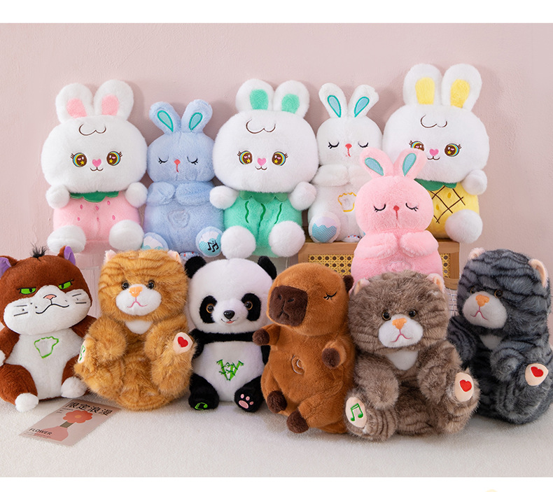 跨境新款呼吸卡皮巴拉毛绒玩偶水獭熊考拉安抚哄睡音乐早教玩偶