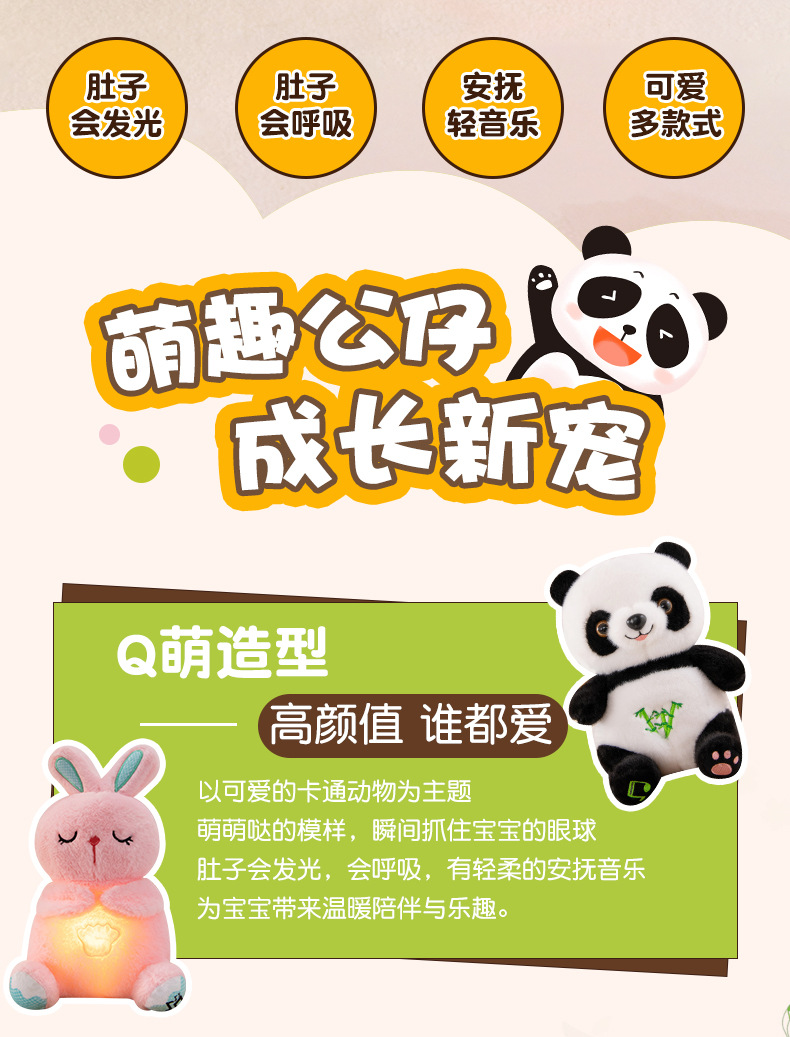 新款呼吸玩偶发光毛绒玩具哄睡音乐早教玩偶安抚神器宝宝睡觉抱