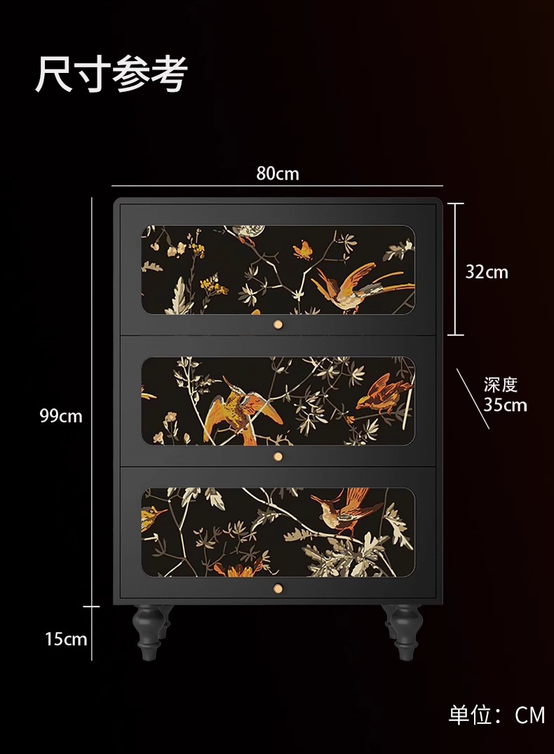 無垢材フレンチレトロダストボックス引き出しキャビネット抽象アート収納キャビネット寝室のベッドサイドテーブルリビングルームサイドキャビネット収納キャビネット
