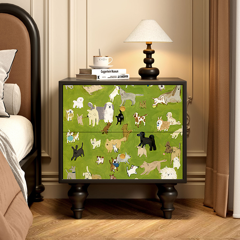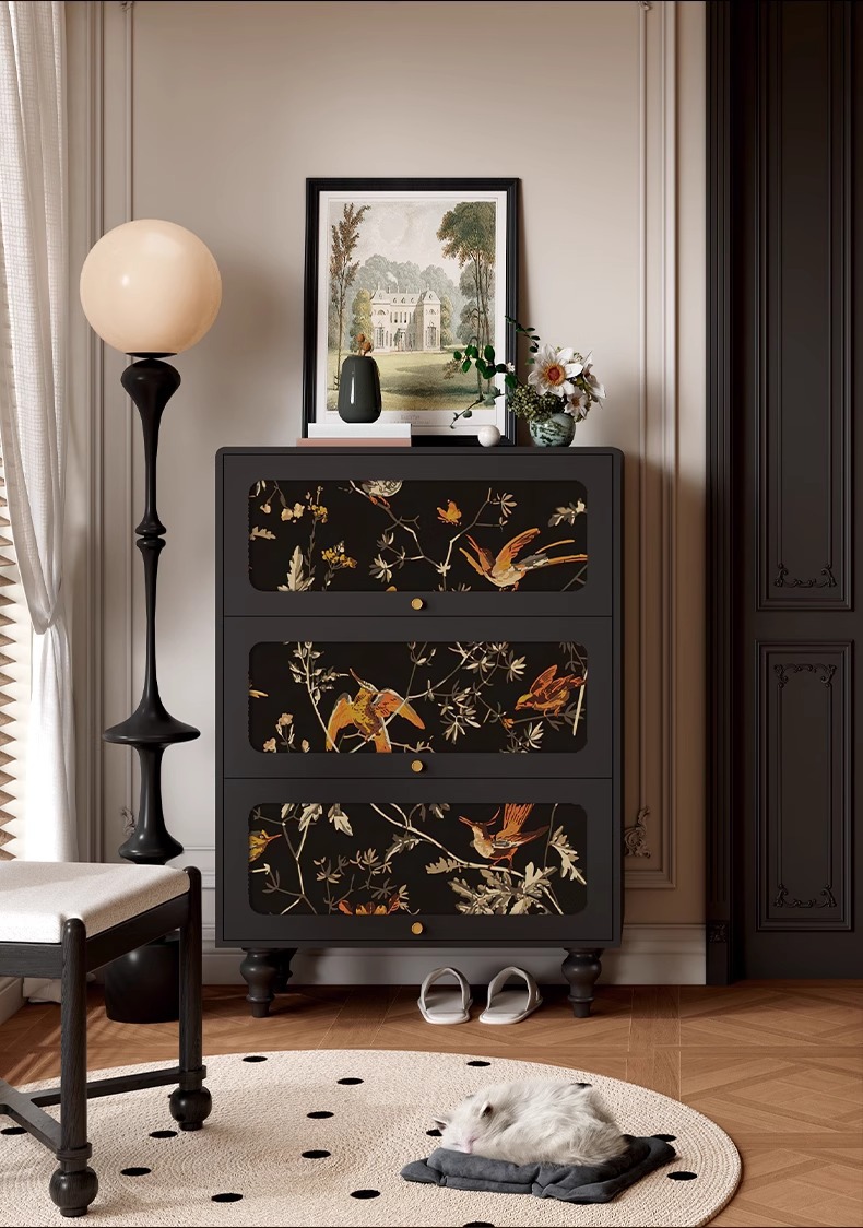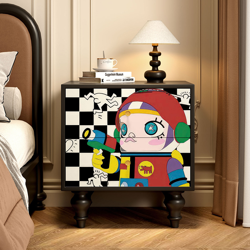 無垢材フレンチレトロ引き出しキャビネット抽象アート収納キャビネット寝室のベッドサイドテーブルリビングルームサイドキャビネット引き出しキャビネット収納キャビネット