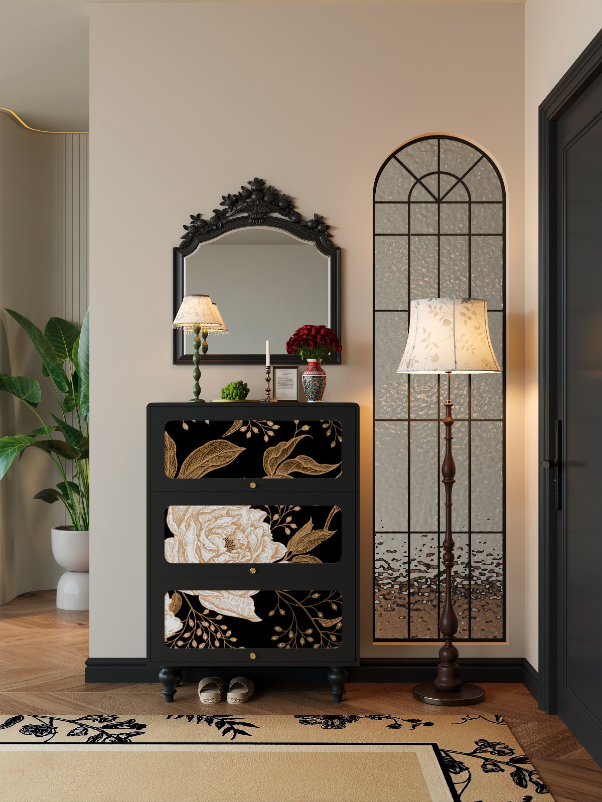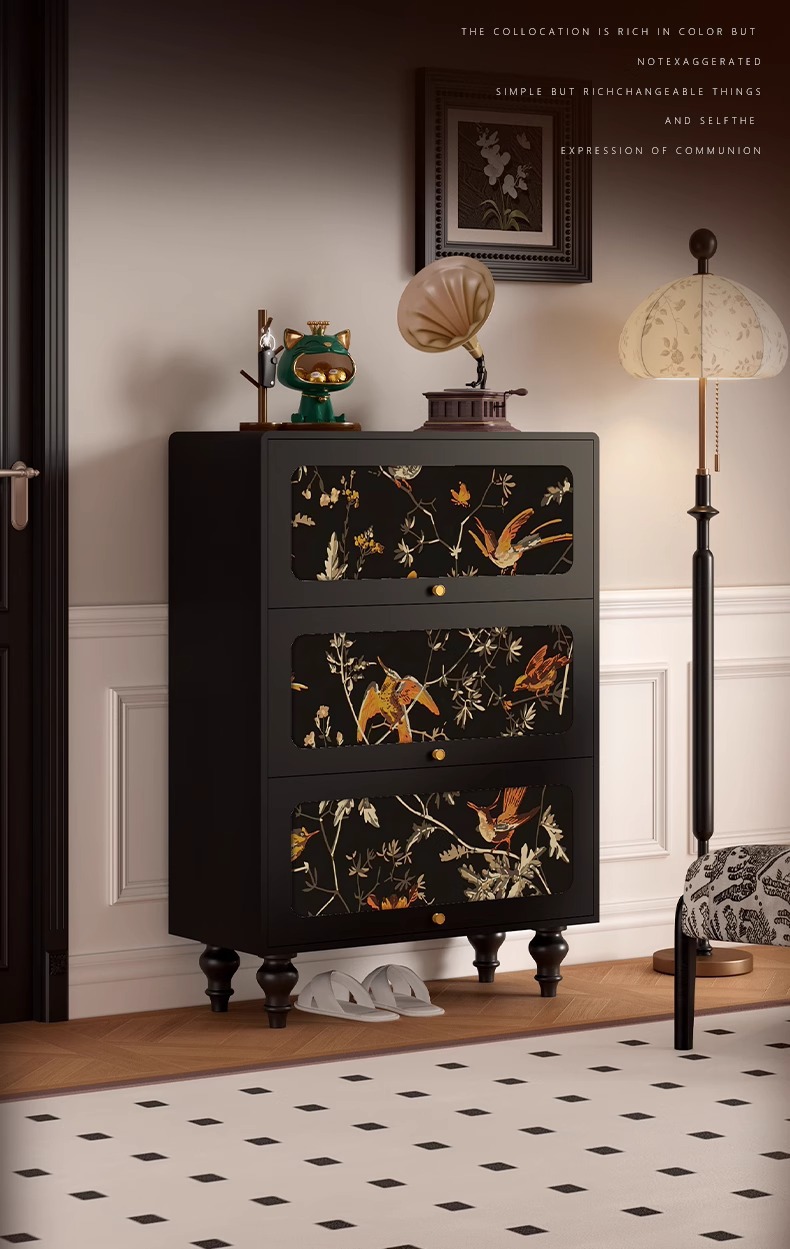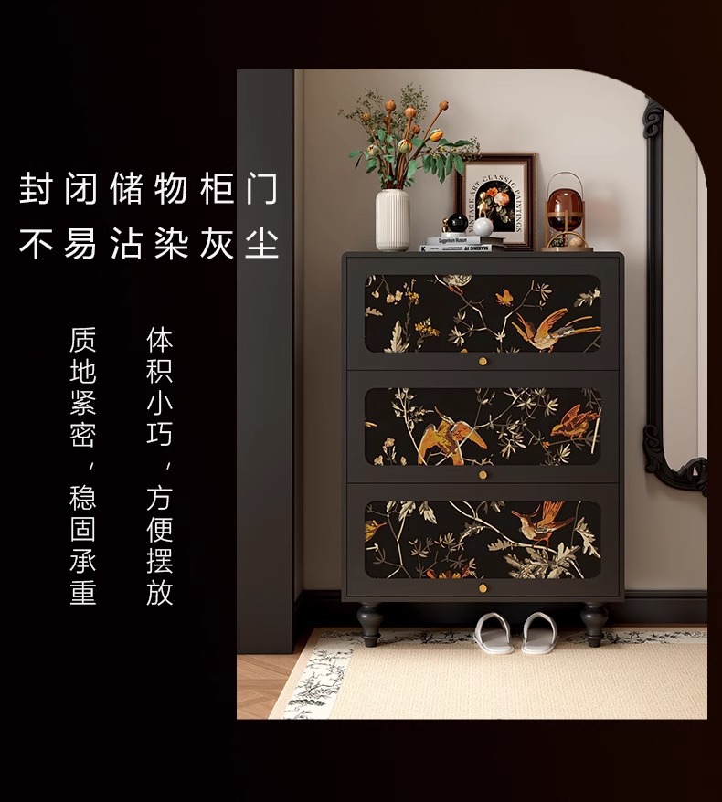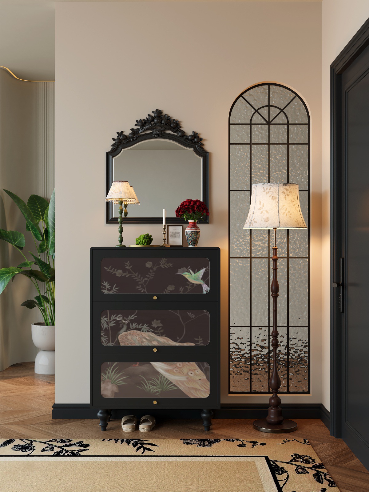 フランスの抽象油絵玄関靴キャビネット玄関キャビネットホームリビングルーム壁一体型無垢材機能収納キャビネット