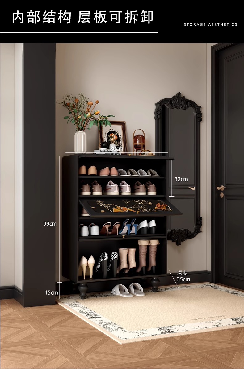 法式复古入户鞋柜玄关柜家用客厅靠墙一体实木多功能收纳储物柜子