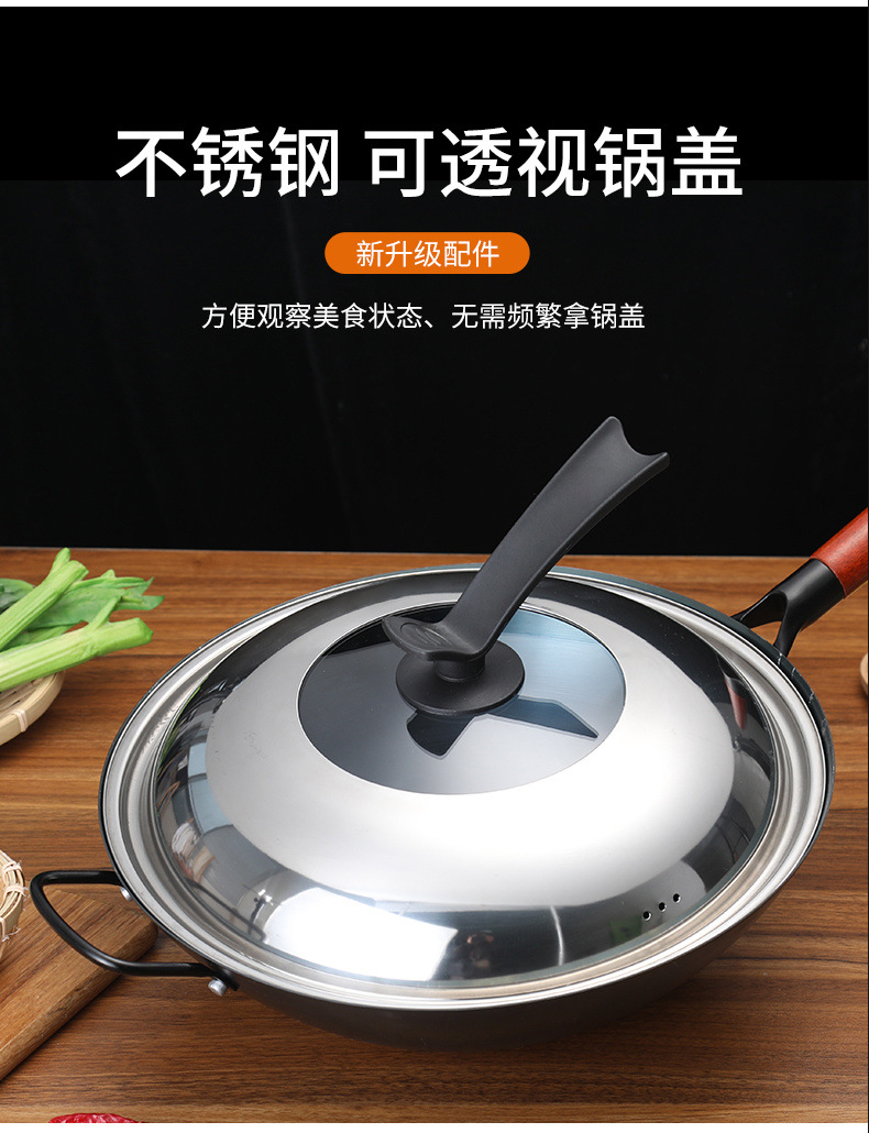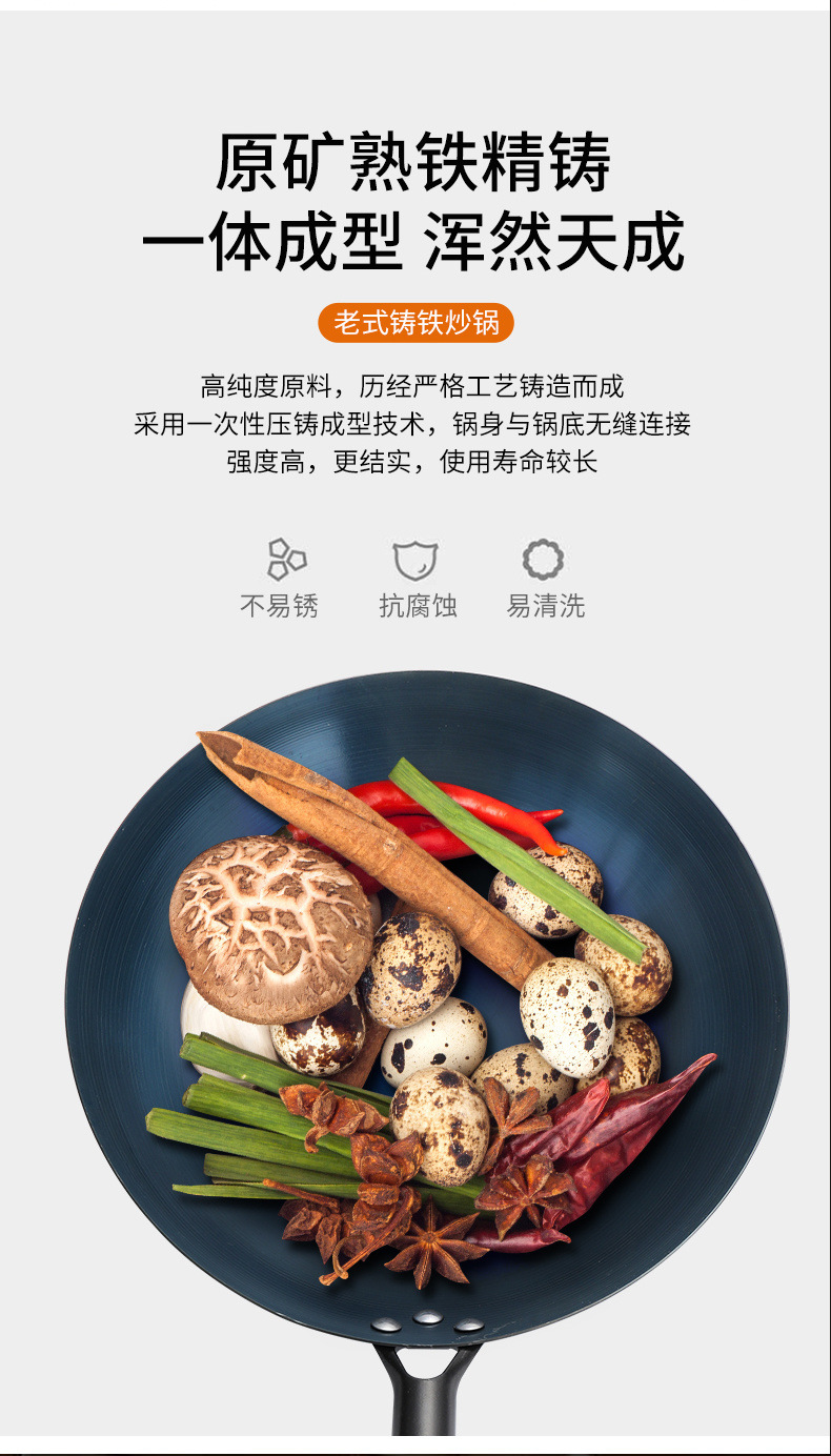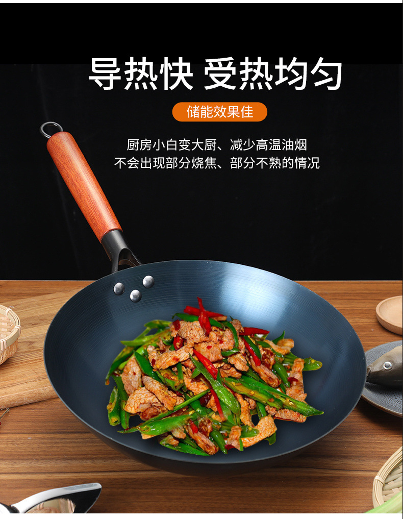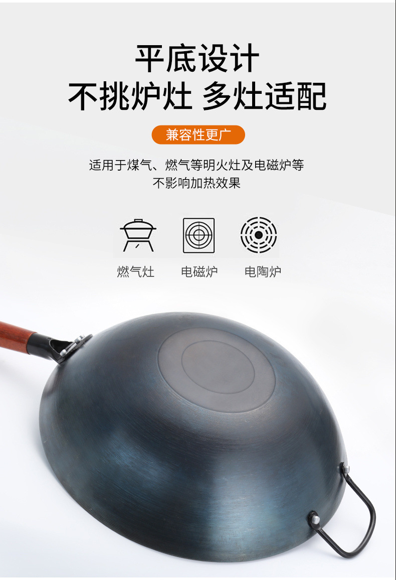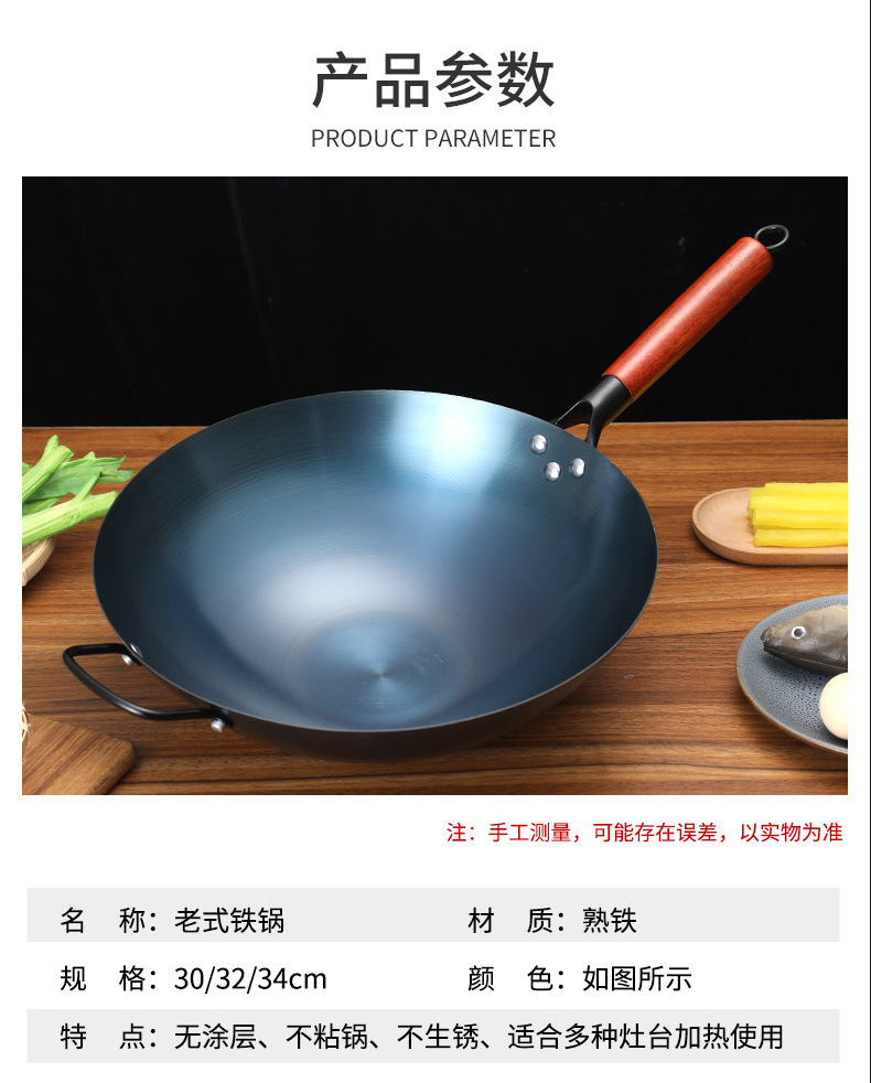 章丘铁锅炒锅不沾锅家用手工老式炒锅瓦斯灶燃气适用圆底无涂层
