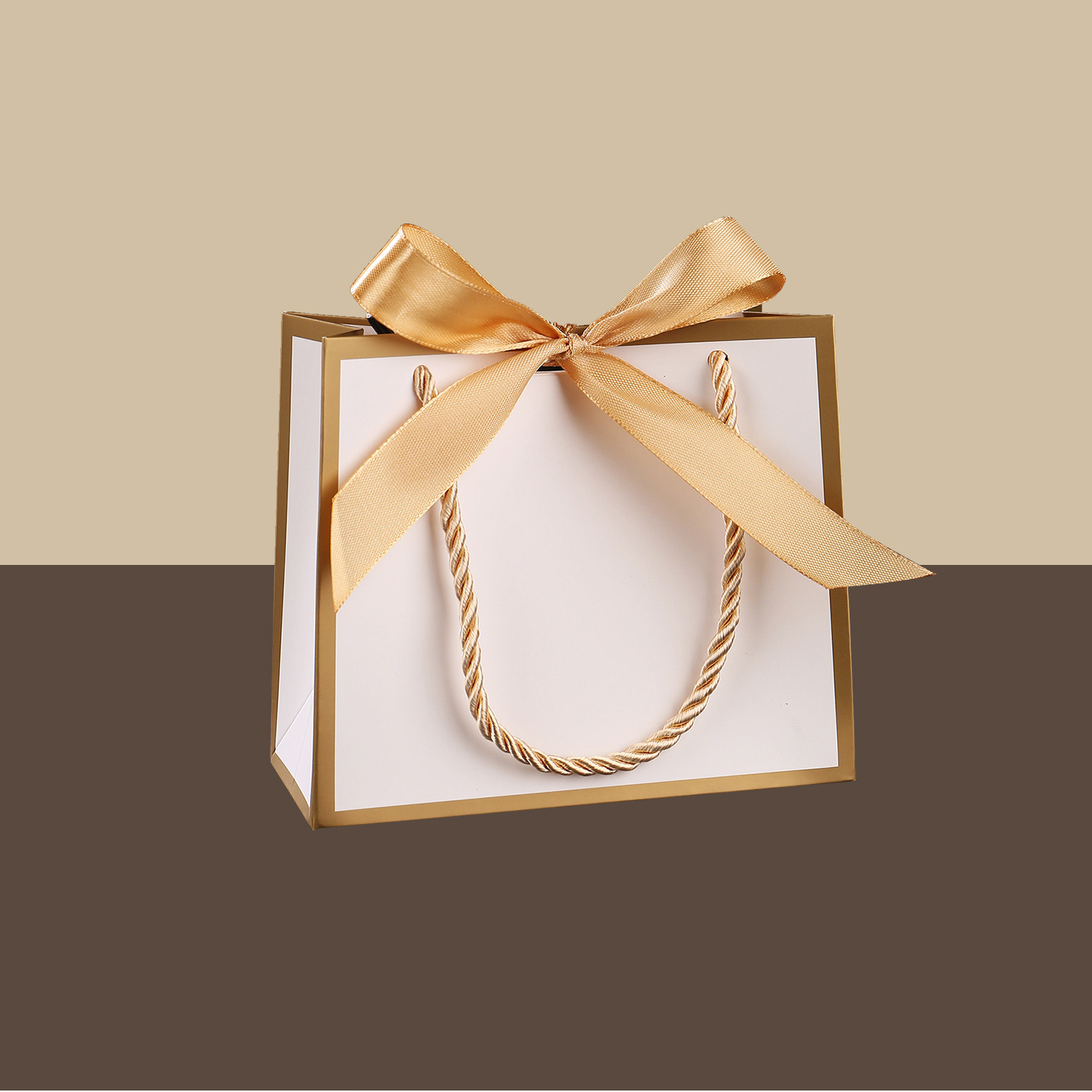 现货款带蝴蝶结手提纸袋婚庆礼品袋金边空白喜糖盒子跨境小礼品袋