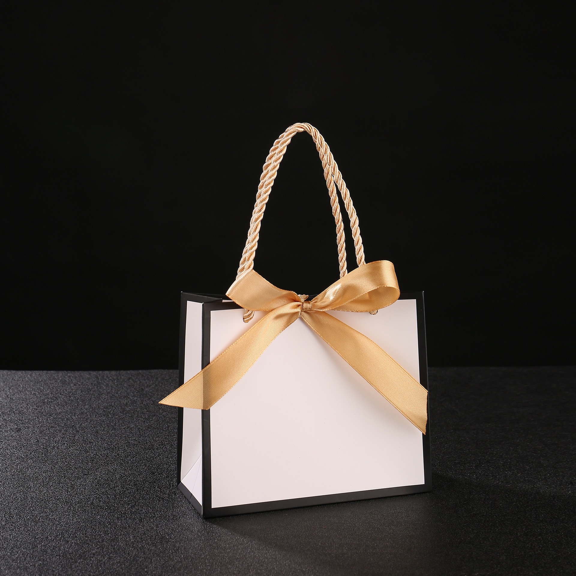 既製服紙袋卸売、リボン付きショッピングバッグ、無地包装、ロゴ印刷可能、ギフトボックス