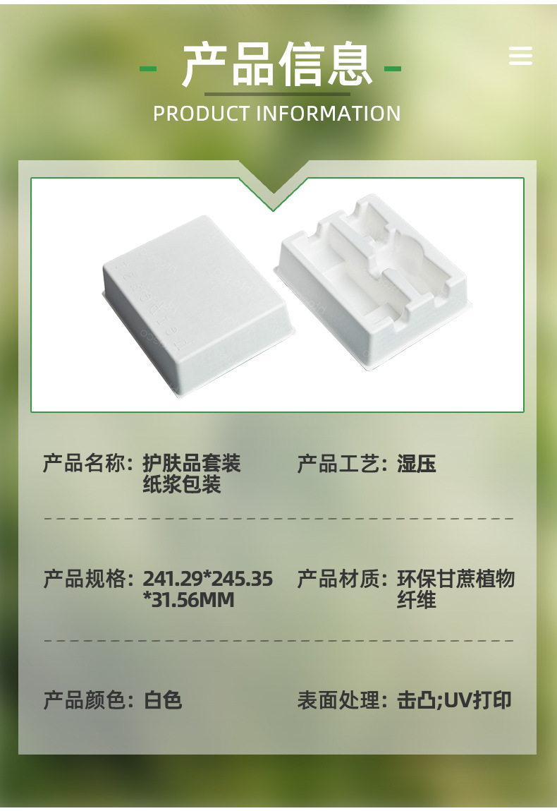 環境に優しい分解性サトウキビパルプ包装箱カスタマイズされたスキンケア製品セット耐衝撃紙トレイパルプ成形包装箱